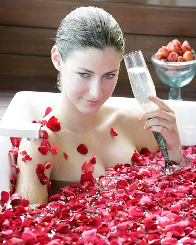 Ванна с лепестками роз для ухода за красотой-это купание в воде и цветы для поглощения
