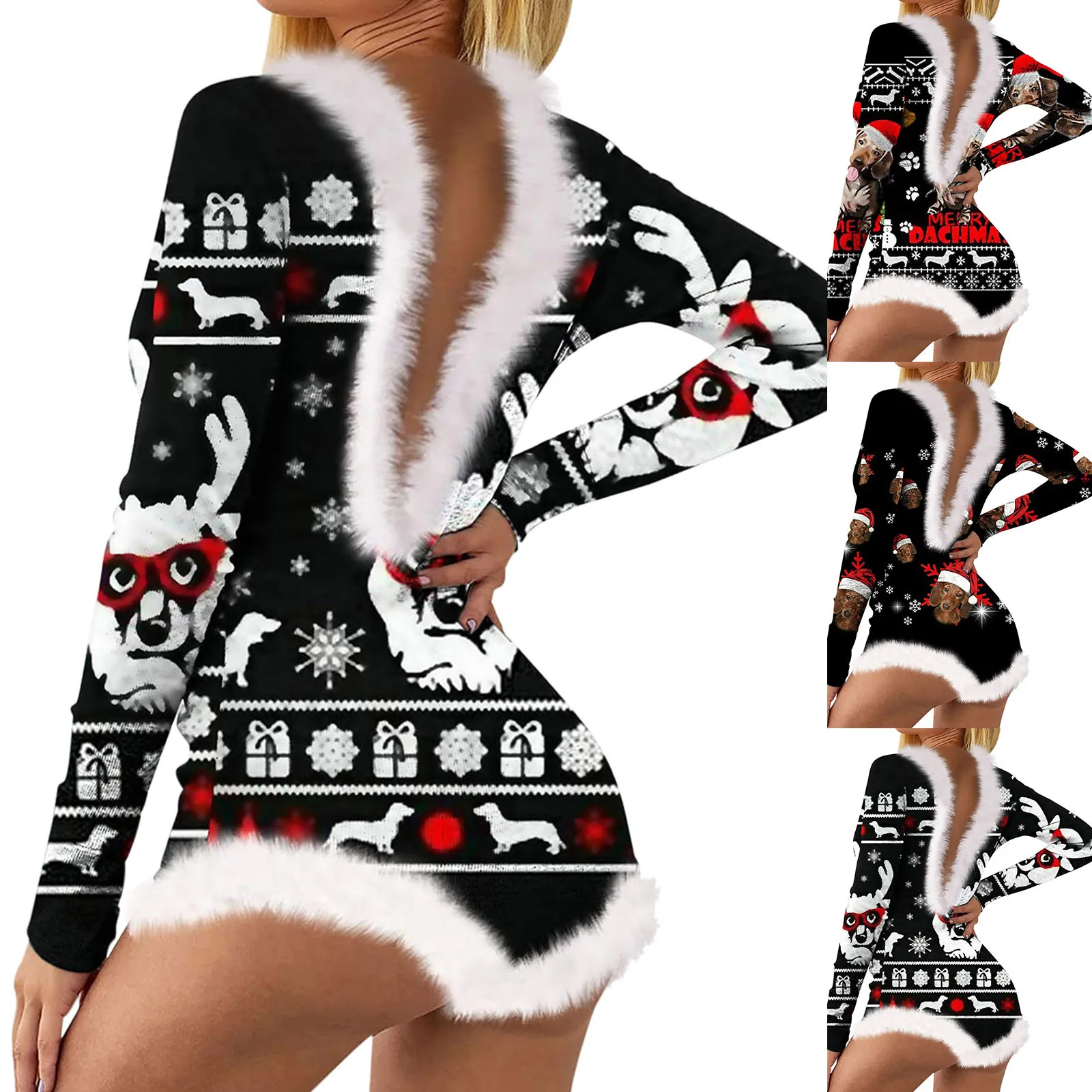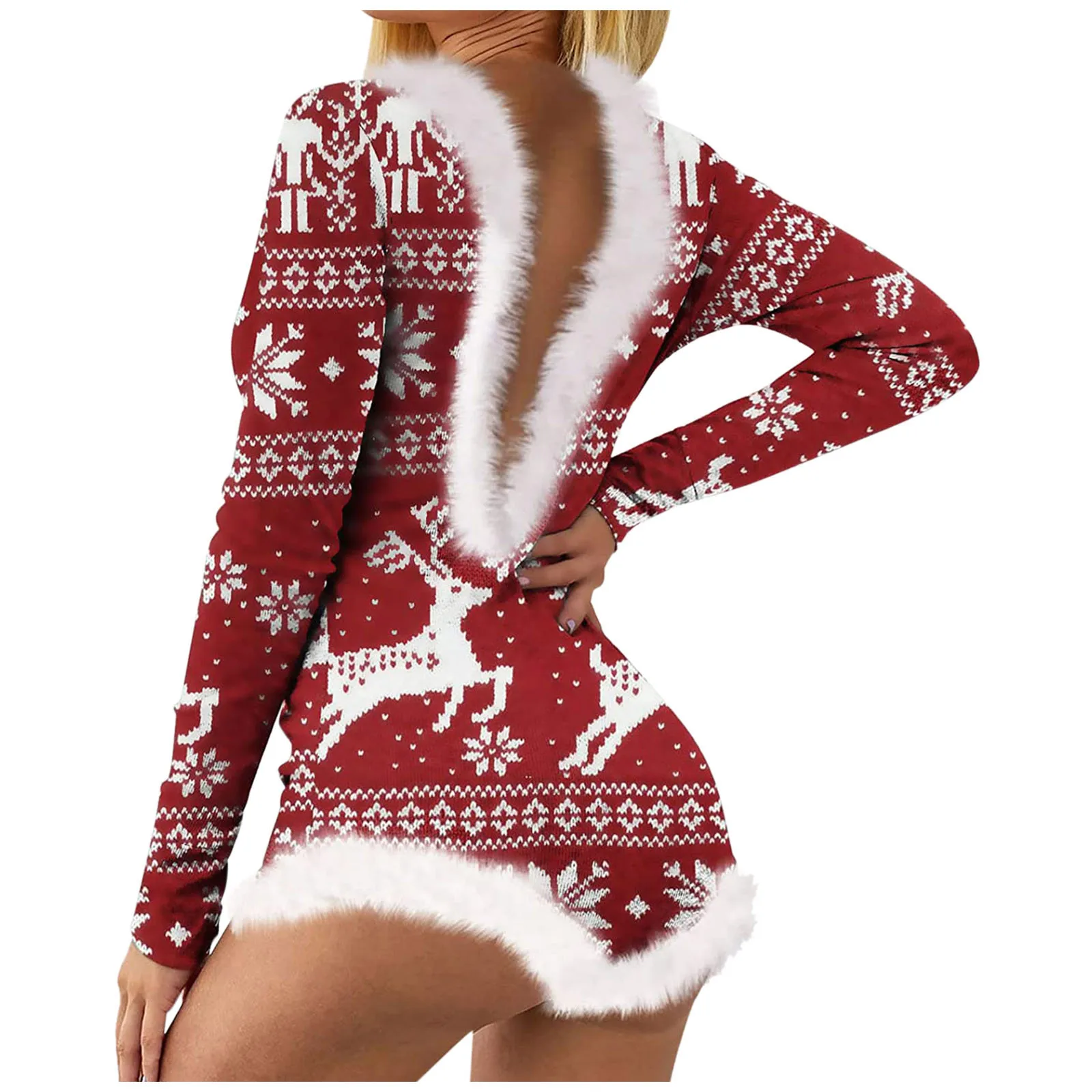 Женские рождественские комбинезоны с принтом, пушистая ночная рубашка с длинным рукавом, комбинезон, боди, комбинезон, домашняя пижама, красные комбинезоны боди женское комбинезон женский зима