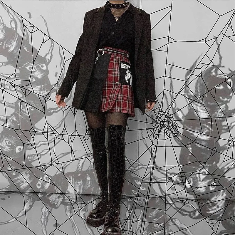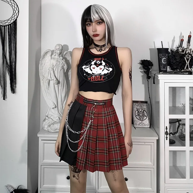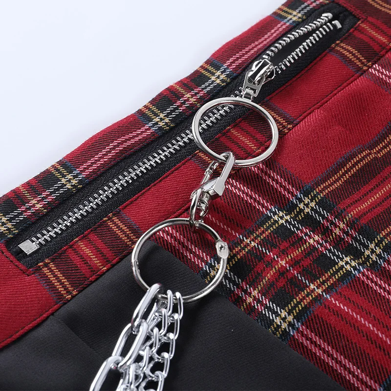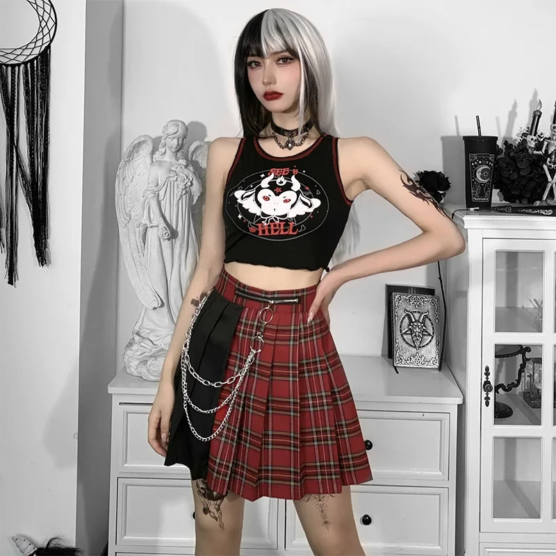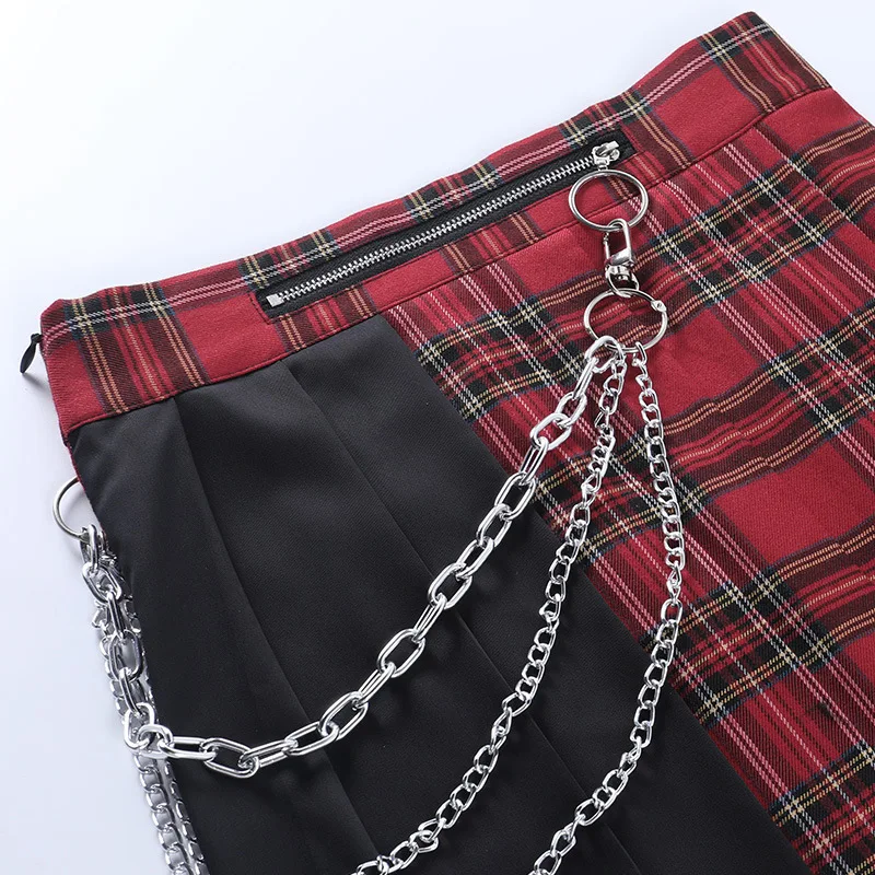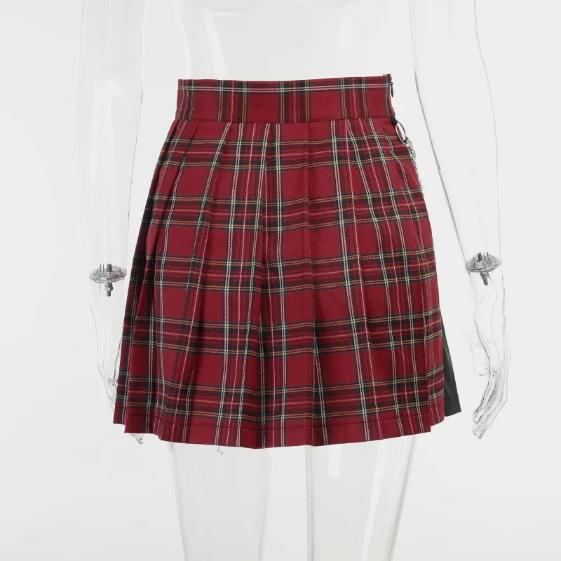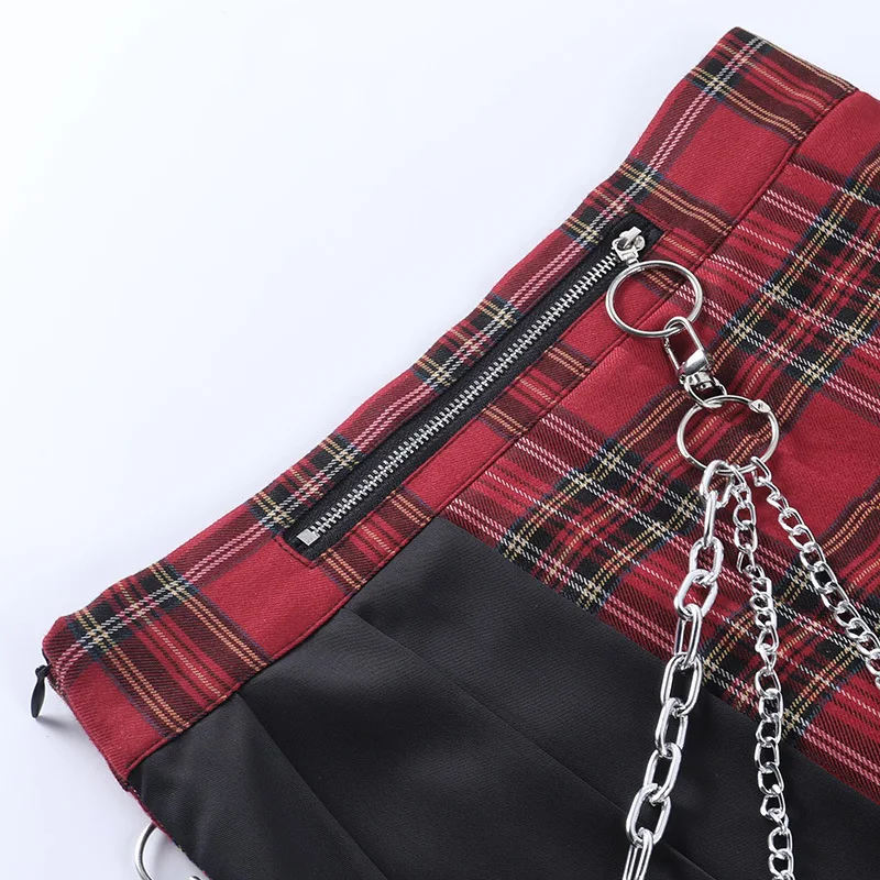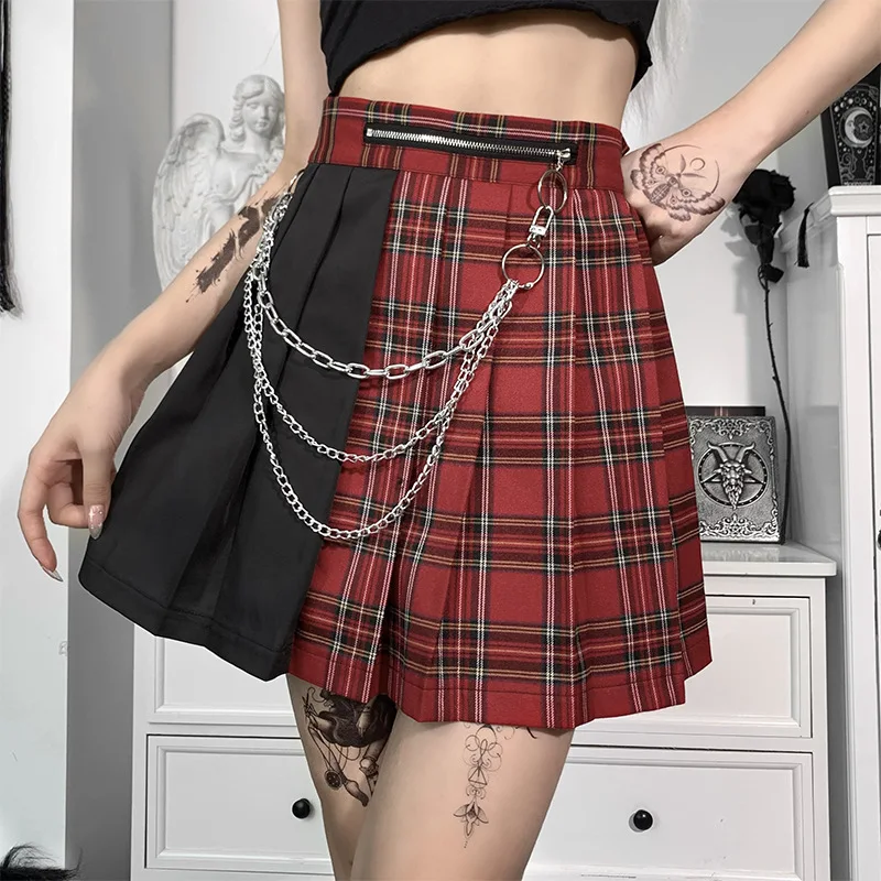 Красная плиссированная клетчатая юбка в готическом стиле, черная Ло...