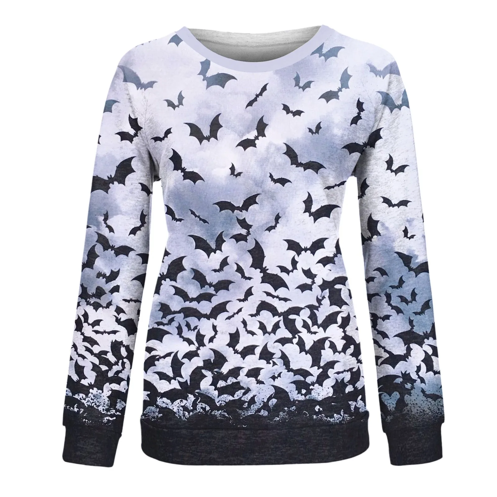 Женская рубашка с принтом на Хэллоуин, свитер с длинным рукавом, Свободный пуловер, топ, блузка, футболка