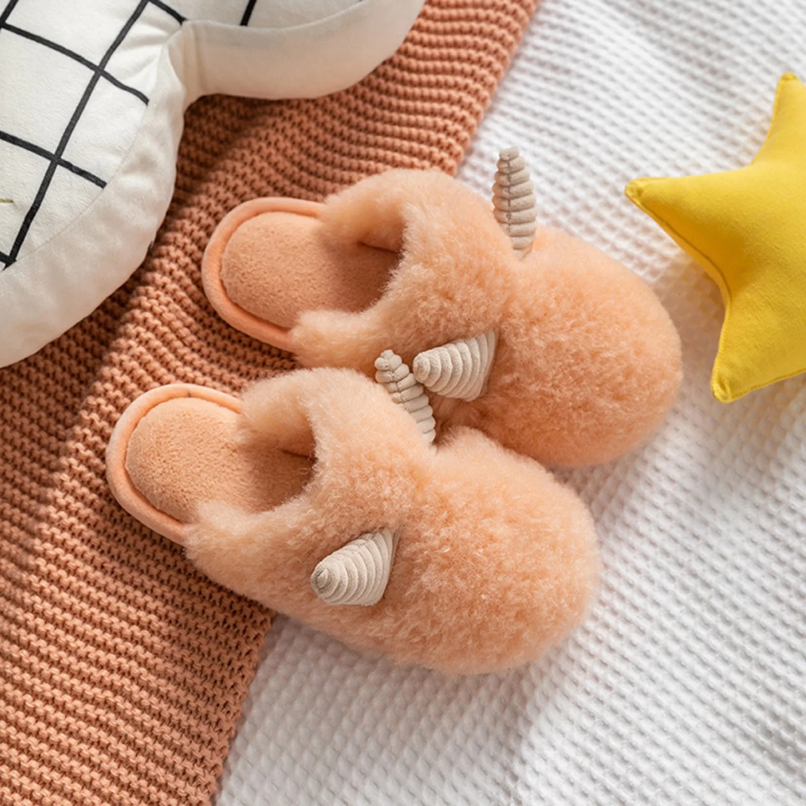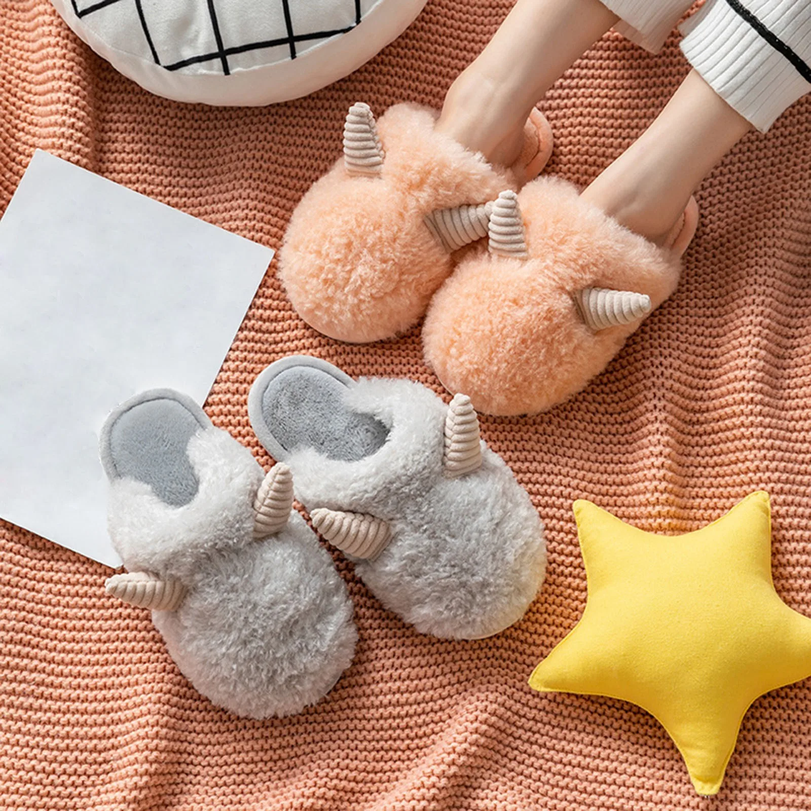 Женские зимние теплые домашние тапочки, обувь для пар, стильные Мультяшные рога, однотонные Нескользящие плюшевые теплые хлопковые домашние тапочки