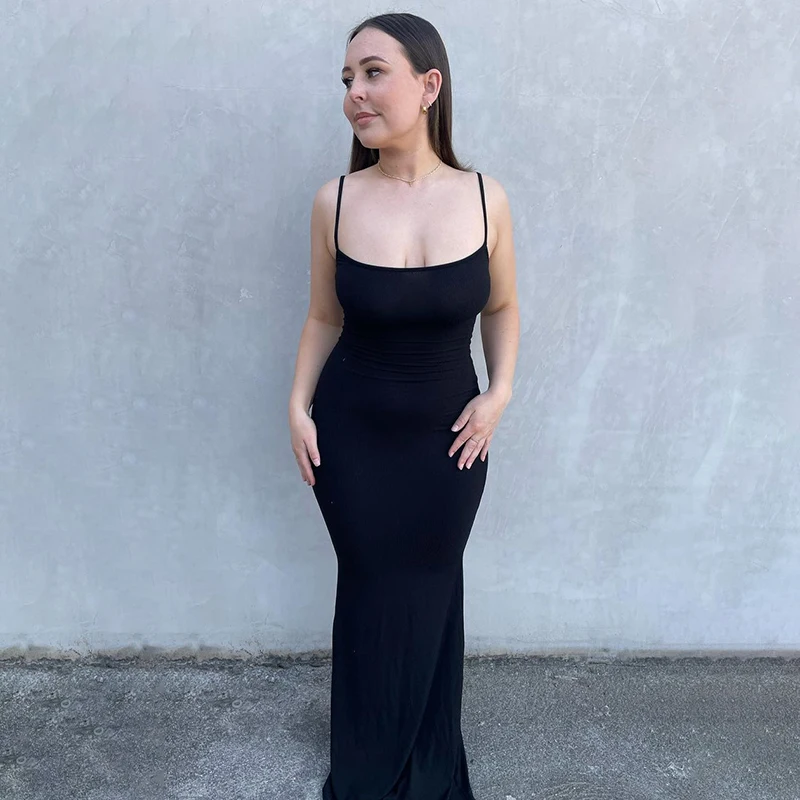 Женское платье-макси на бретелях-спагетти, повседневное облегающее ...
