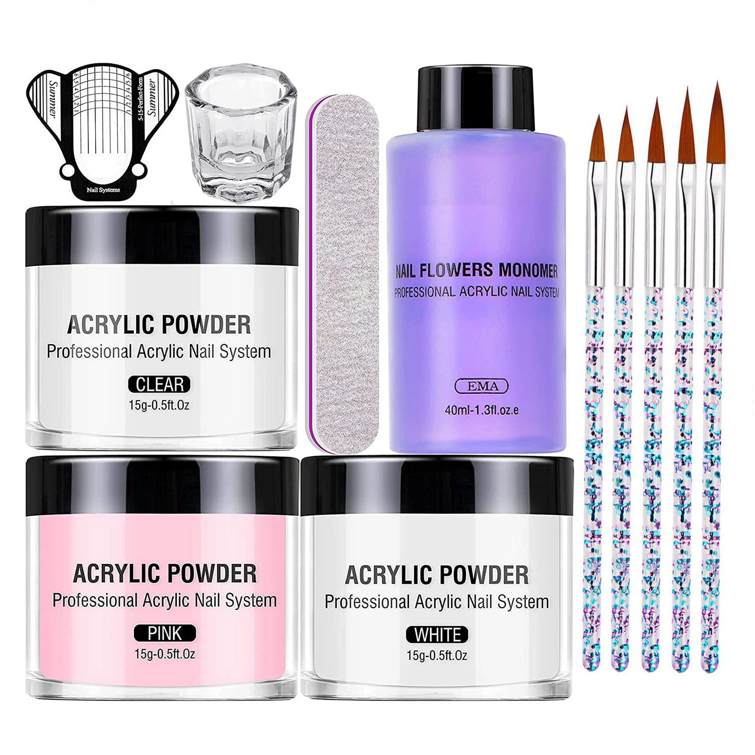 Набор для наращивания акриловых ногтей, профессиональный мономер жидкого порошка с кисточкой для нейл-арта, формы для ногтей, набор для начинающих