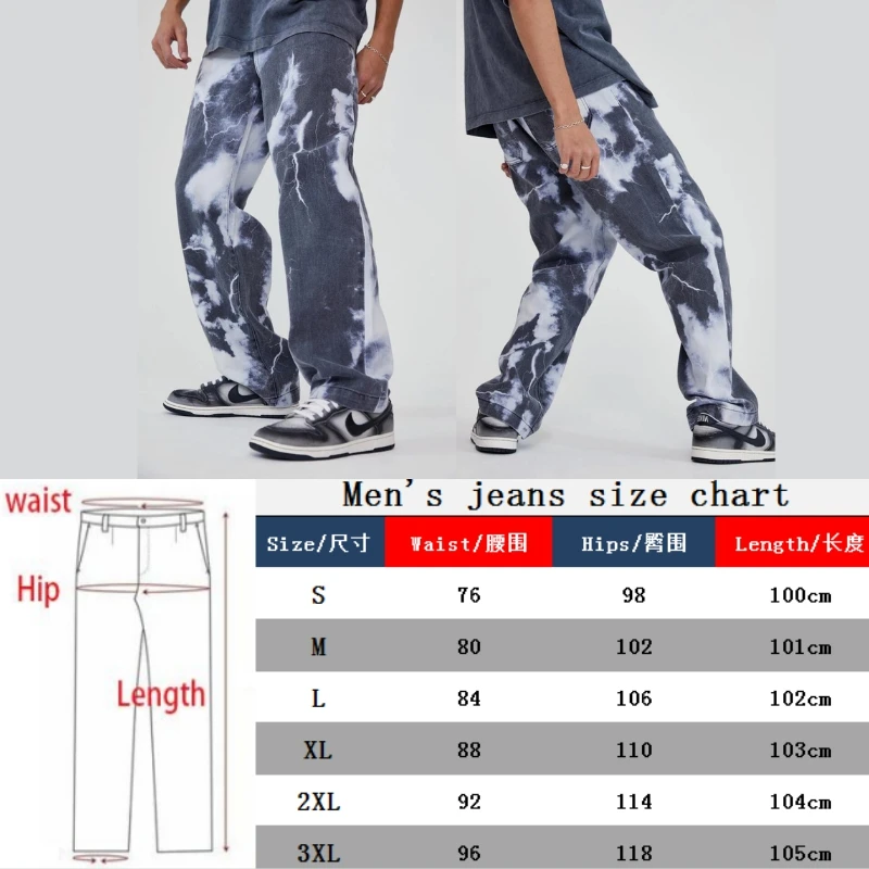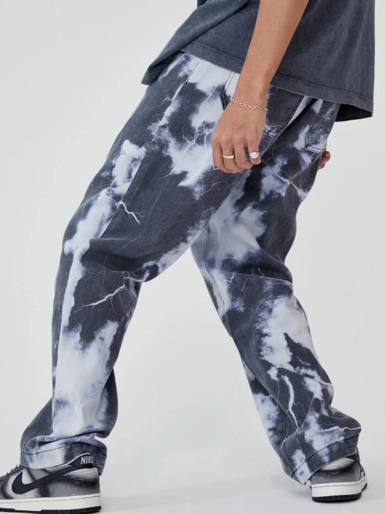 Джинсы мужские прямые с рисунком облаков и молний, брюки из денима ...