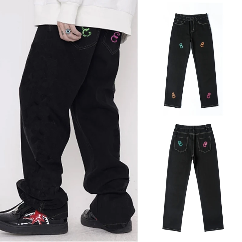 Джинсы мужские свободного покроя, уличная одежда, брюки с принтом м...