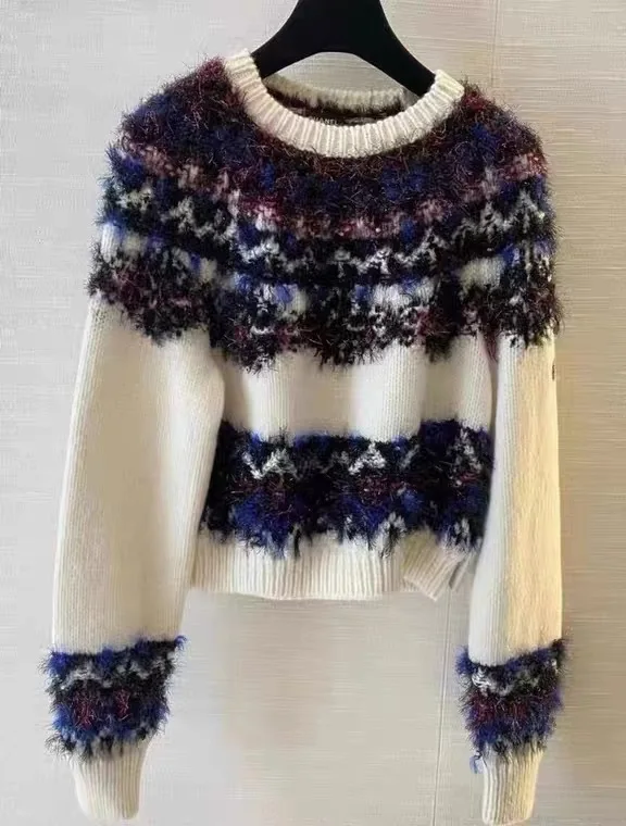 Рождественский пуловер, зимний роскошный подиумный цветной флисовый шерстяной полосатый вязаный розовый свитер с бахромой и круглым вырезом, топ, женская брендовая одежда