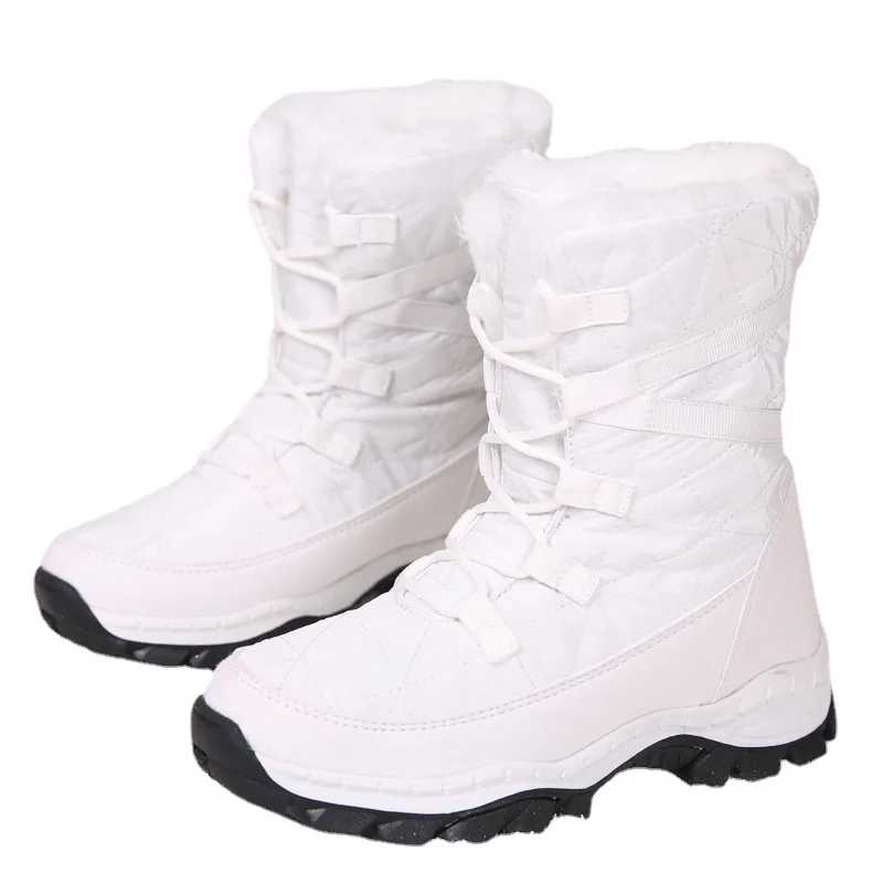 Белые ботинки 2021, женские зимние теплые ботинки для снежной погоды, водонепроницаемая обувь с меховой подкладкой, морозные теплые противоскользящие меховые ботильоны, уличная женская обувь