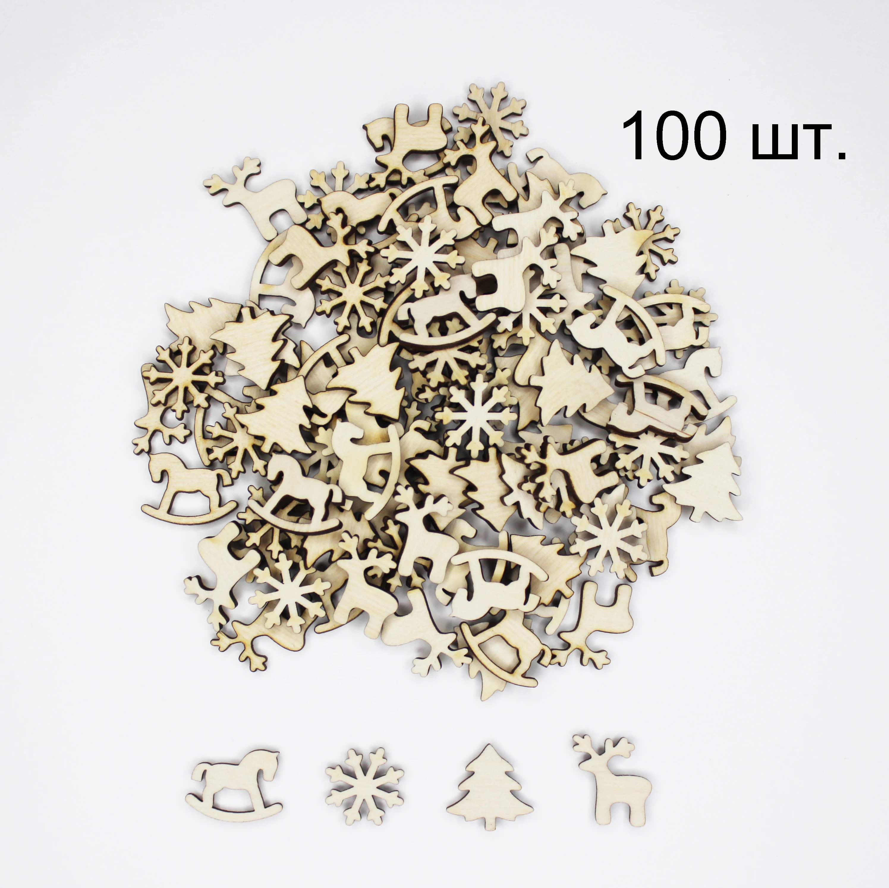 100 штук украшения новогодние, рождественские деревянные аксессуары, DIY, снежинки, олень, лошадка, елка, ручная работа