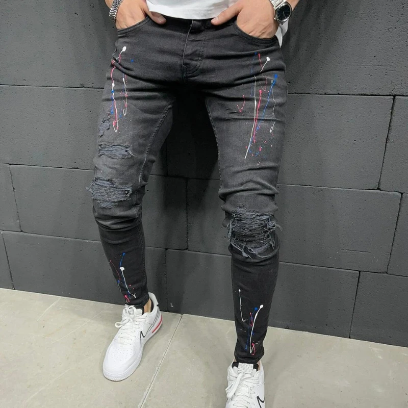 Длинные брюки-карандаш, рваные джинсы, облегающие весенние мужские ...