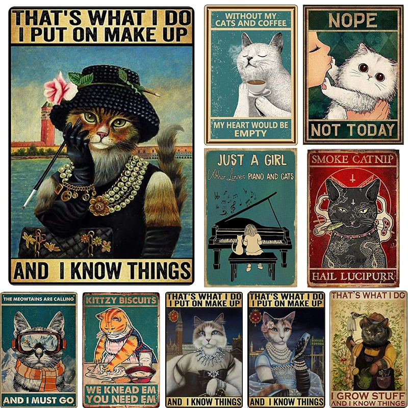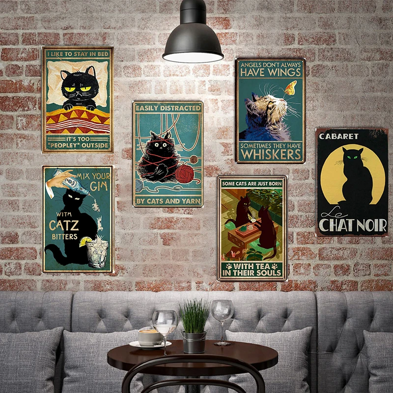 Милый Забавный жестяной знак в виде черной кошки, Декор, металлические таблички, печатная пластина, картина, ретро настенные знаки, украшение