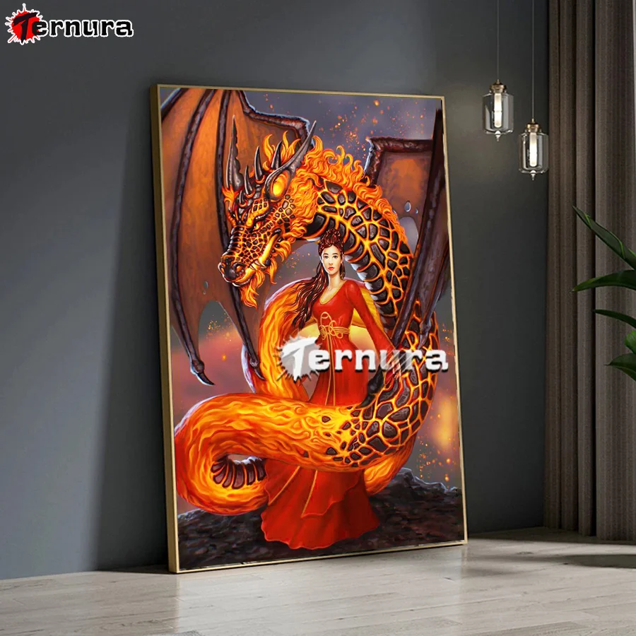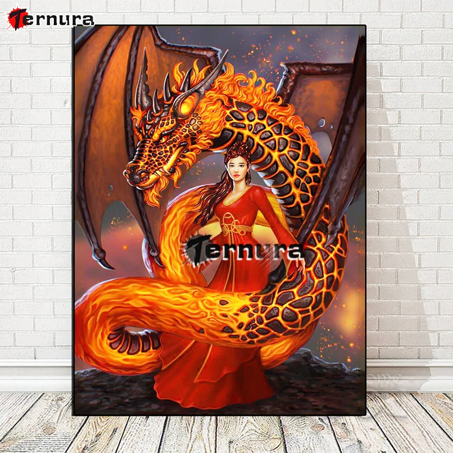 Картина из страз дракон с пламенем, вышивка крестиком, миф о Драконе и женщине, полная квадратная картина Стразы, алмазная вышивка, подарок ручной работы