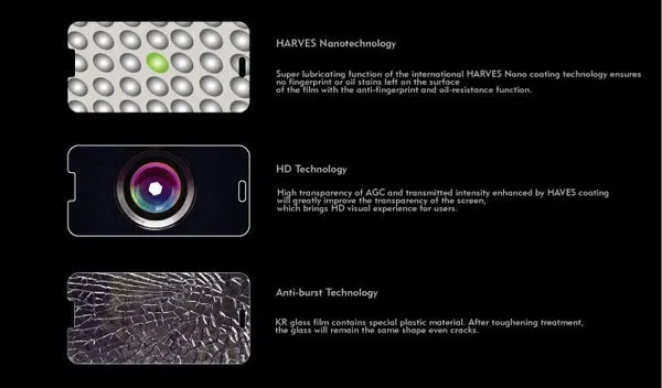 Высокая четкость, твердость 9H, устойчивость к царапинам, взрывостойкость, защита от отпечатков пальцев