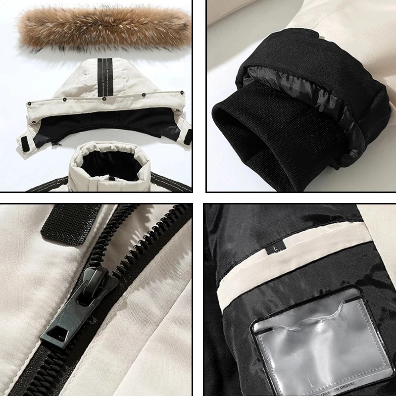 Мужской зимний пуховик с меховым воротником и защитой от ветра