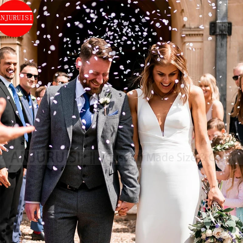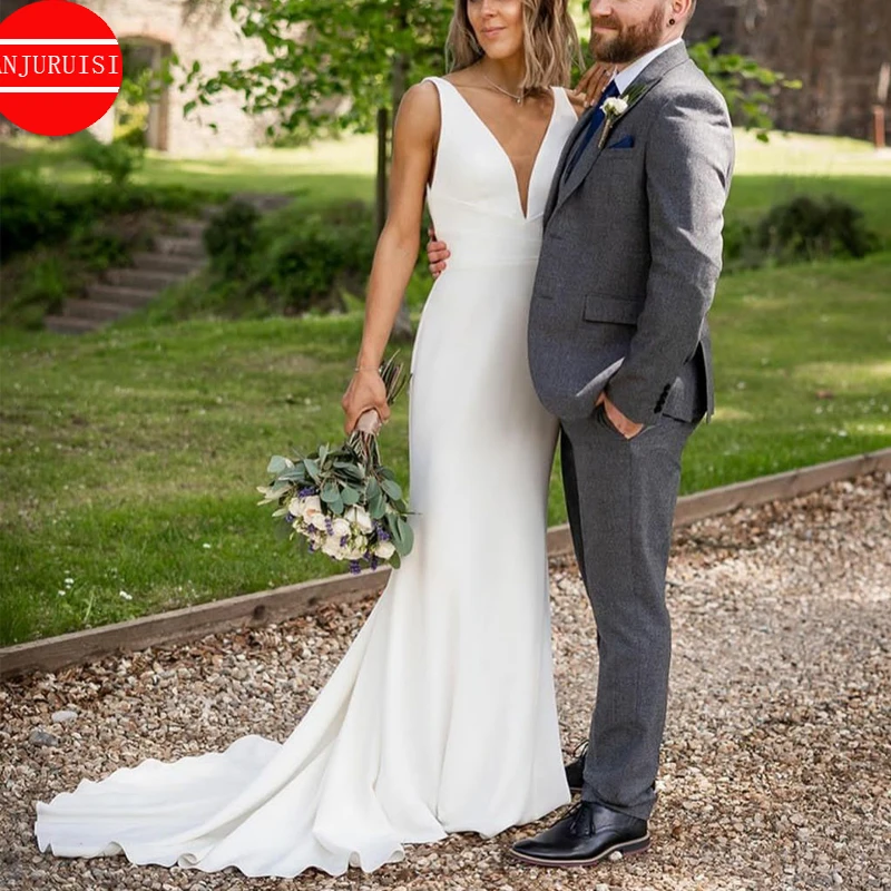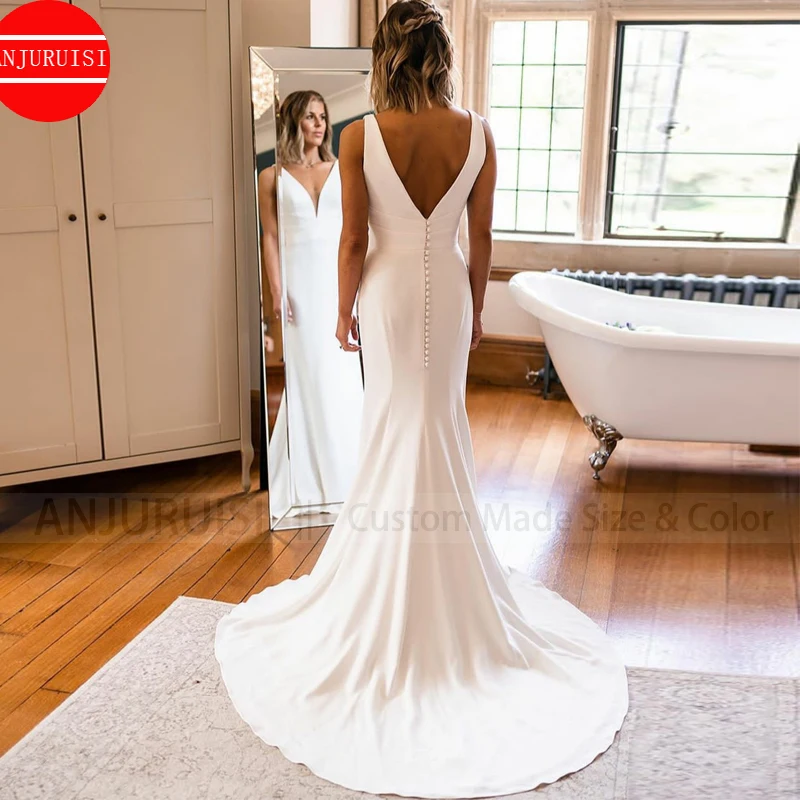 Пикантное пляжное свадебное платье с V-образным вырезом, мягкое атл...