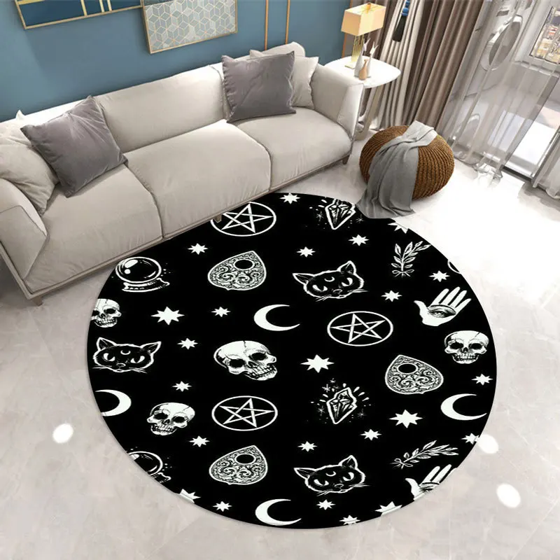 Черно-белый ковер Moon Area Version-готический ковер с черепом и кр...