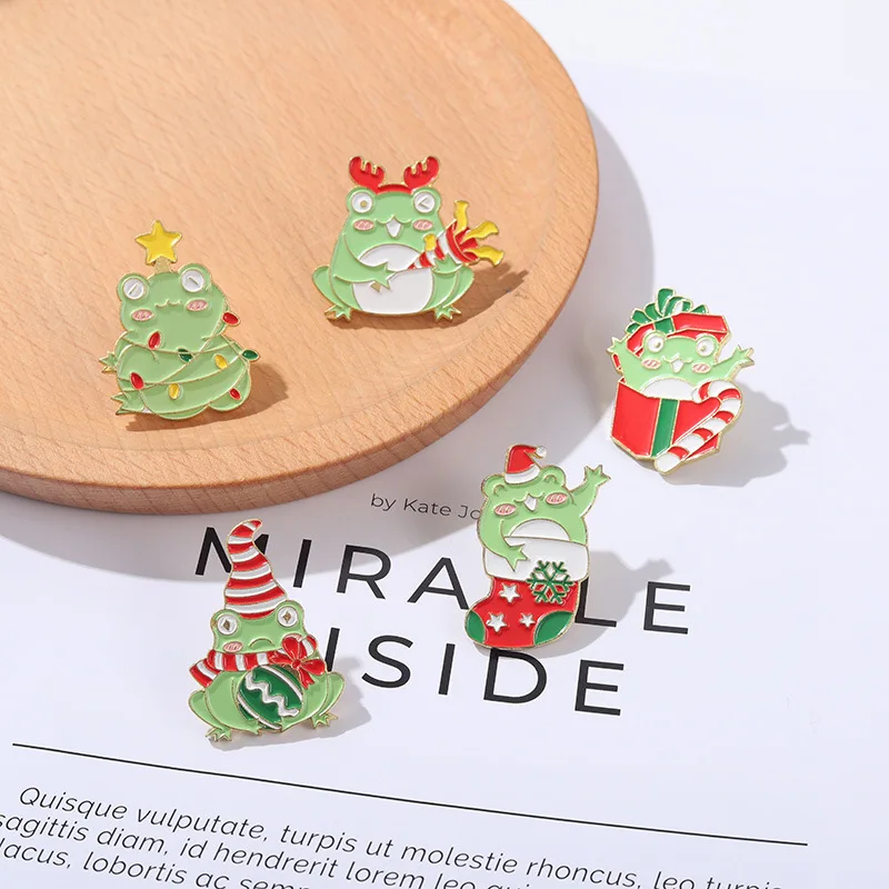 Мультяшные булавки в форме лягушки, Рождественский элемент, брошь и...
