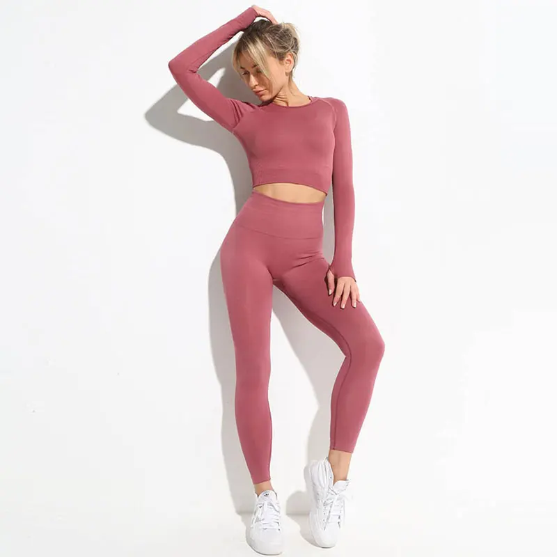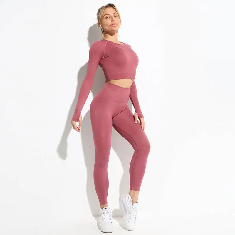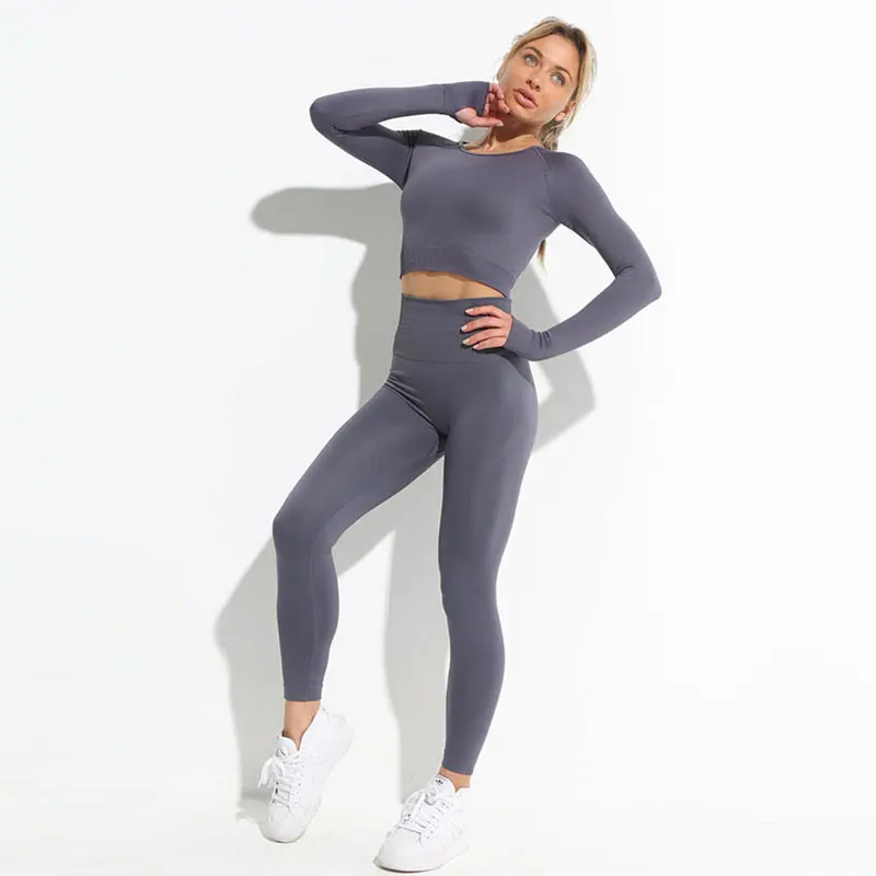 Спортивные костюмы для йоги, спортивные Леггинсы для спортзала, Женский бесшовный Женский комплект из топа с длинным рукавом и бюстгальтера, спортивный костюм, женская спортивная одежда