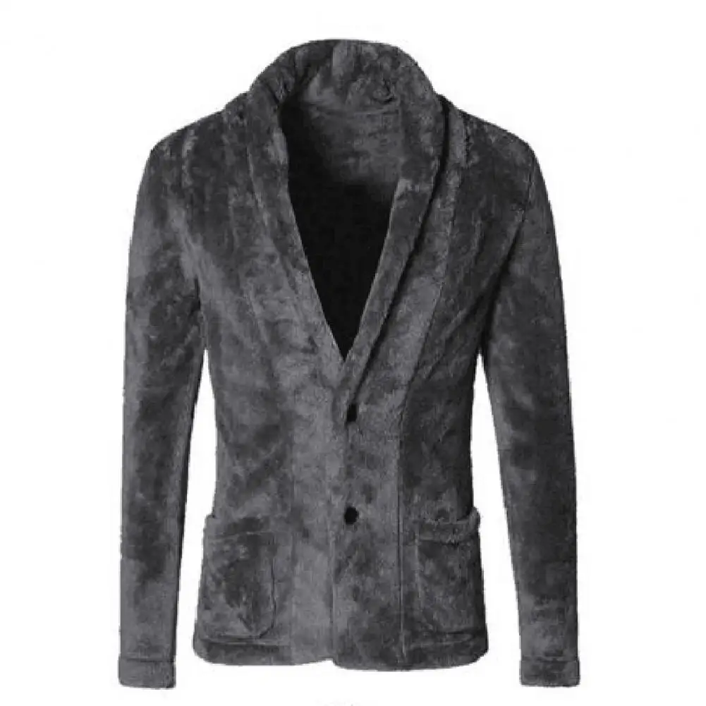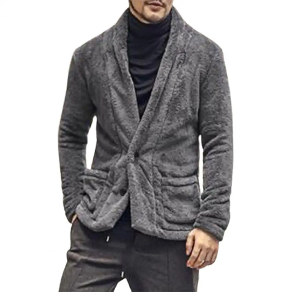 Мужское зимнее пальто 2021, однотонная плюшевая куртка с лацканами, толстая зимняя куртка, износостойкая мужская куртка для повседневной носки