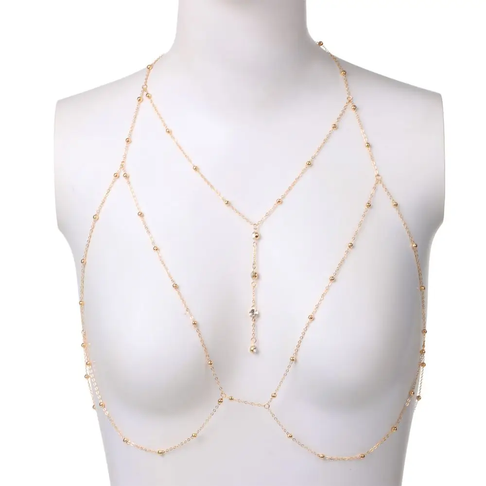 Лидер продаж, модные ювелирные изделия золотого и серебряного цвета, Женское Ожерелье, бюстгальтер, цепочка через плечо, цепочка для груди с кисточками, сексуальная цепочка в стиле панк