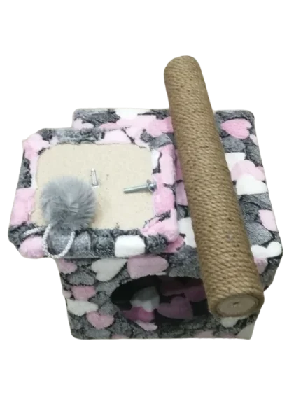 Игровой комплекс домик когтеточка джутовая для кошек с полкой и игрушкой