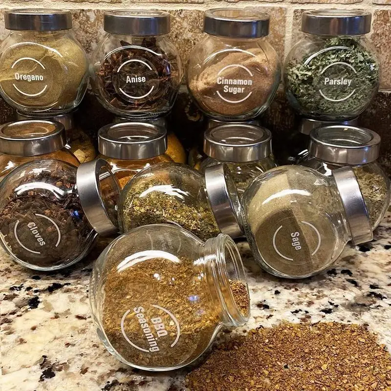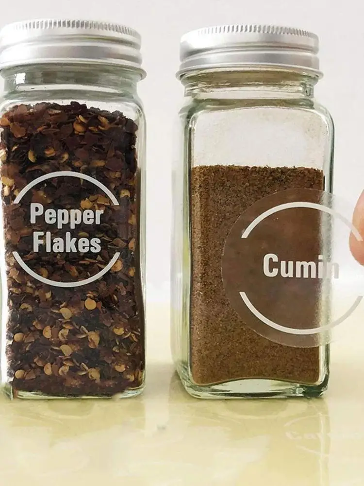 Прозрачные этикетки для специй, предварительно напечатанные водонепроницаемые черные и белые наклейки для кухонных банок с буквами, самоклеящиеся этикетки Seaso V0n0
