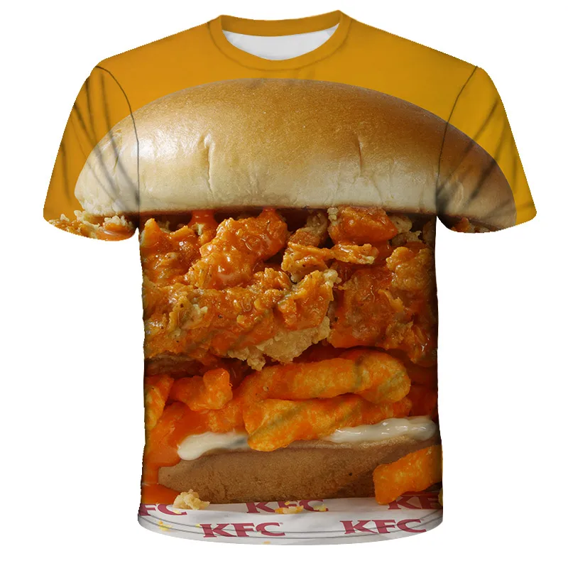 Футболка мужская оверсайз в стиле хип-хоп, модная Свободная рубашка с объемным принтом гамбургеров, картошки фри, фаст-фуда, лето 2021