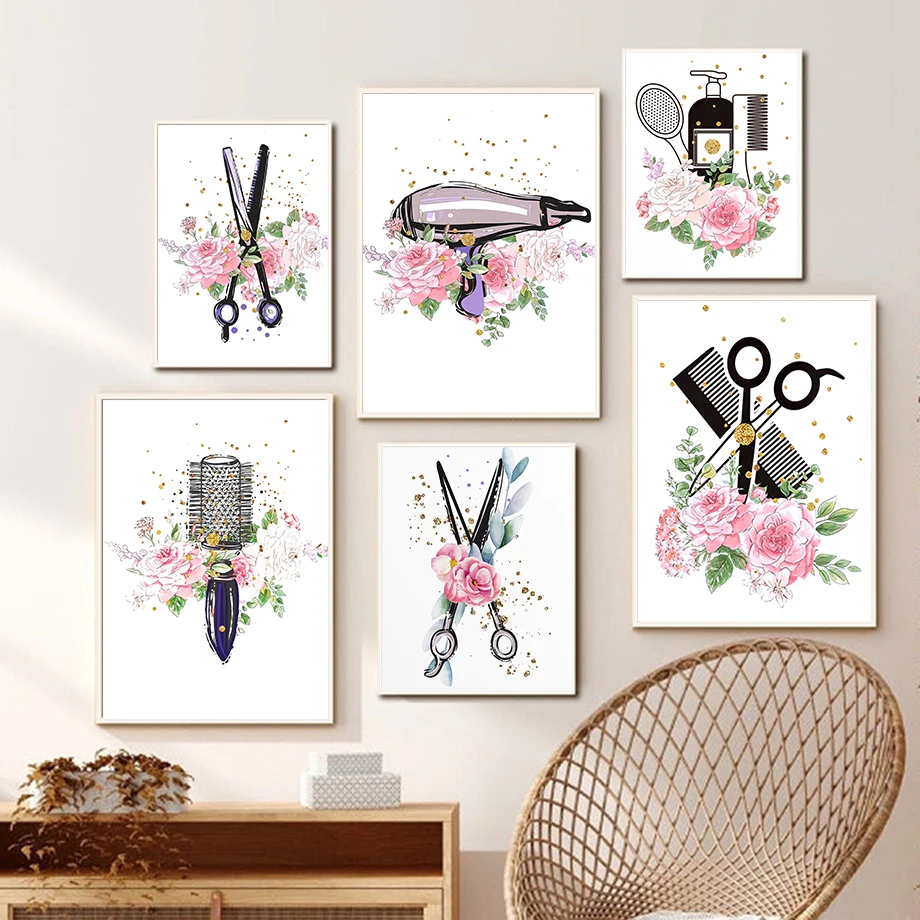 Парикмахерские ножницы фен для волос шампунь мультфильм настенная К...