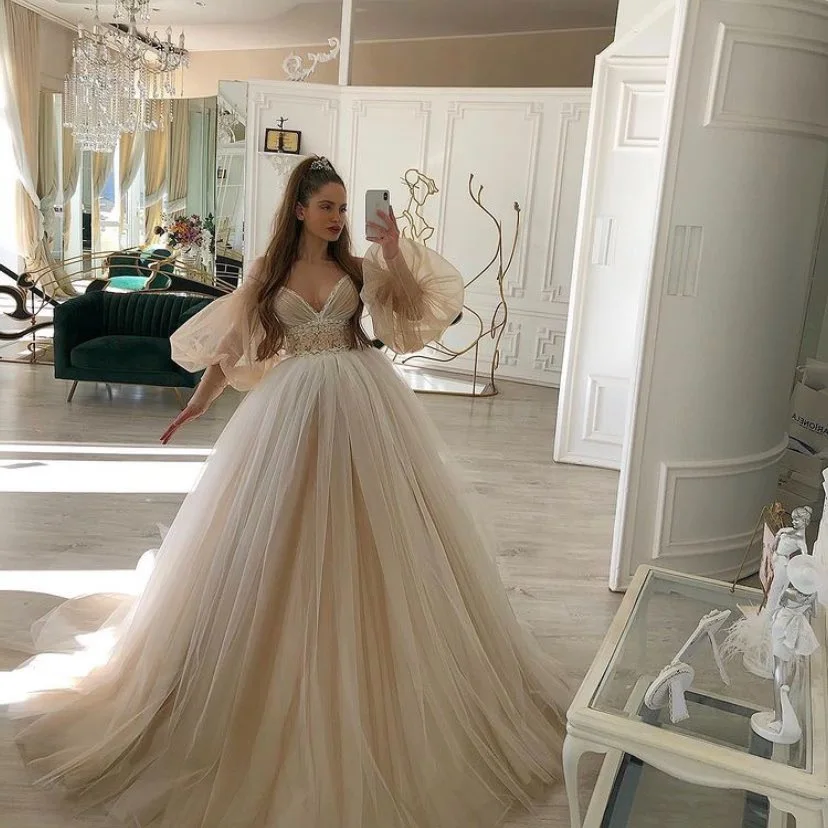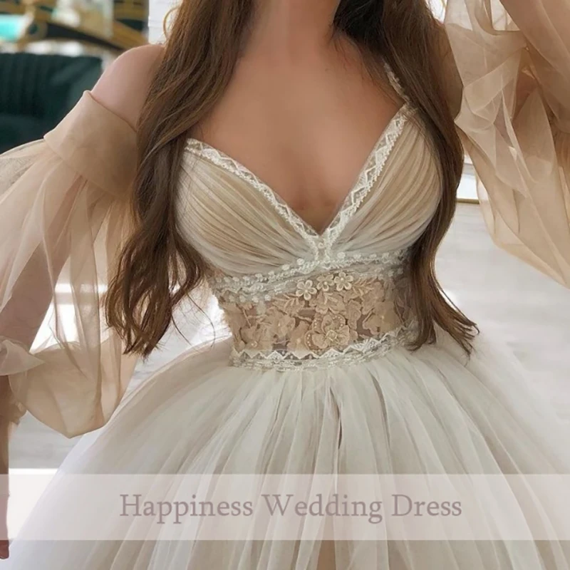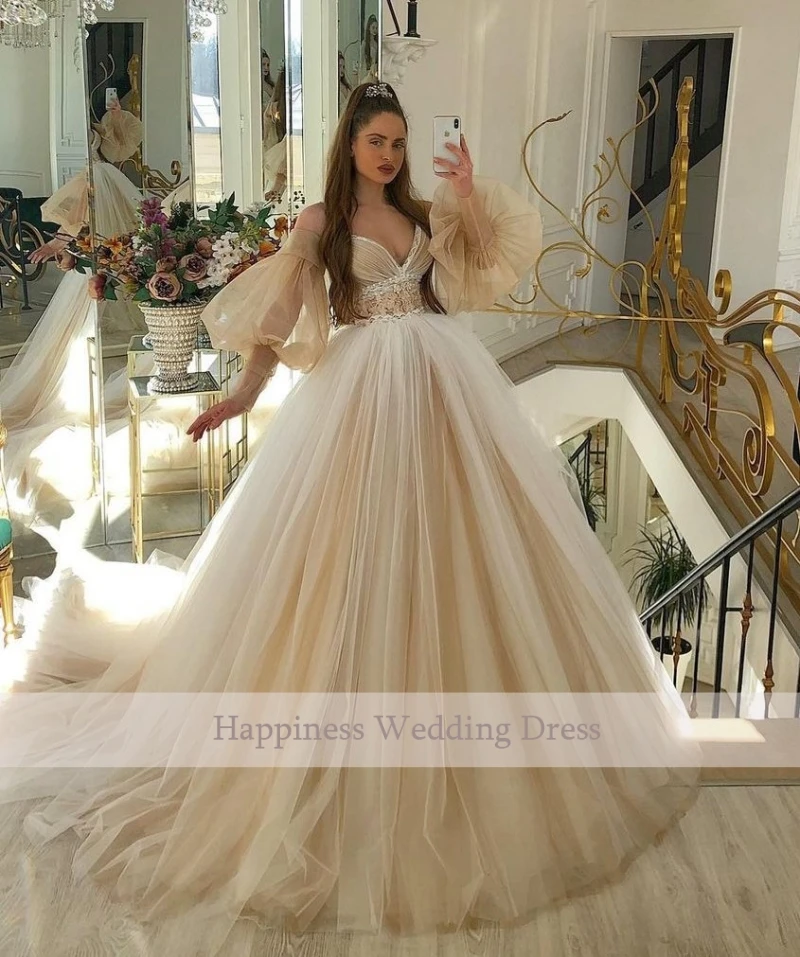 2022 бальное платье с глубоким V-образным вырезом, свадебное платье с длинными рукавами, сексуальное Тюлевое платье с аппликацией и шлейфом, свадебные платья, платья для невесты