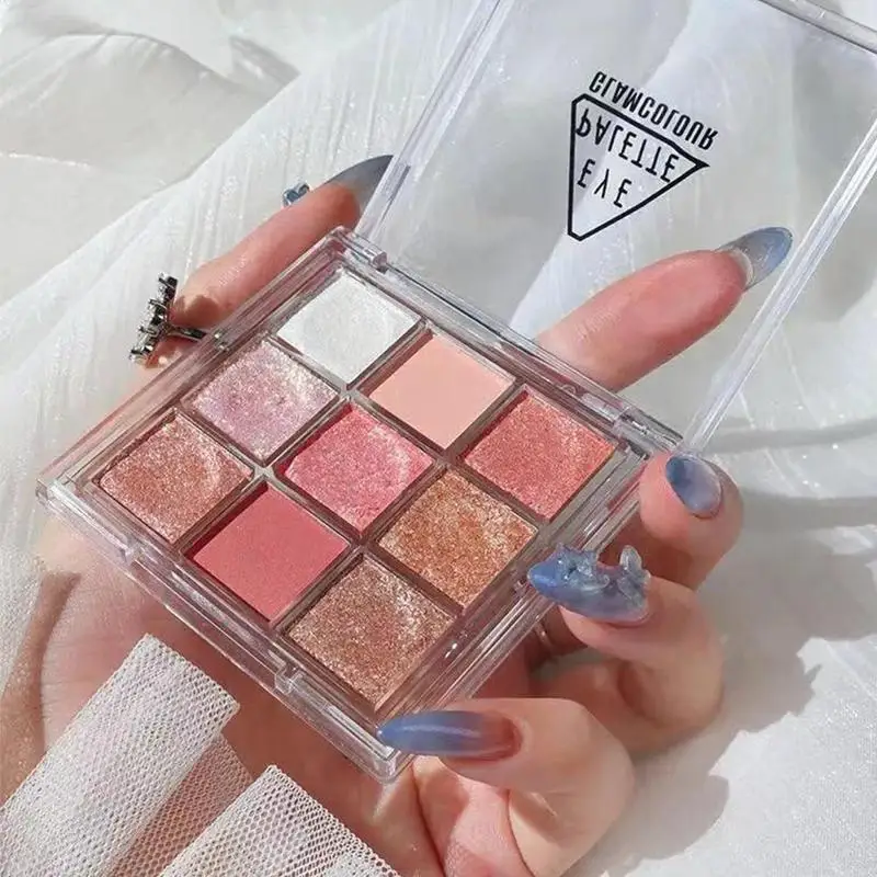 Прозрачные 9-цветные акриловые тени для век Jiugongge, тени для век в виде тыквы, соды, блестящие тени для век с блестками, оранжевый перламутровый S5c7