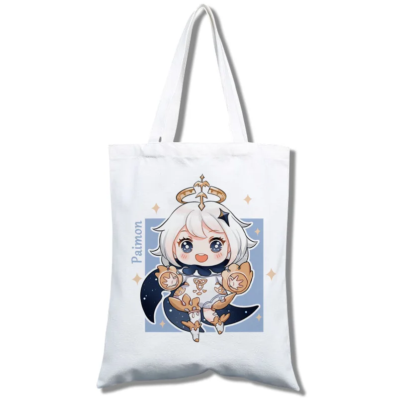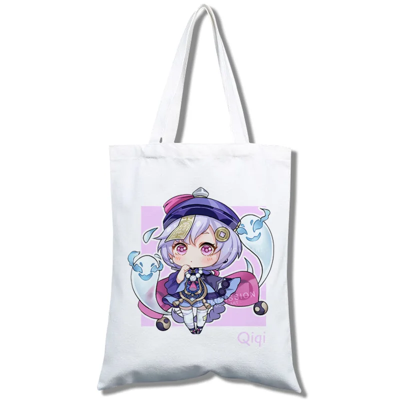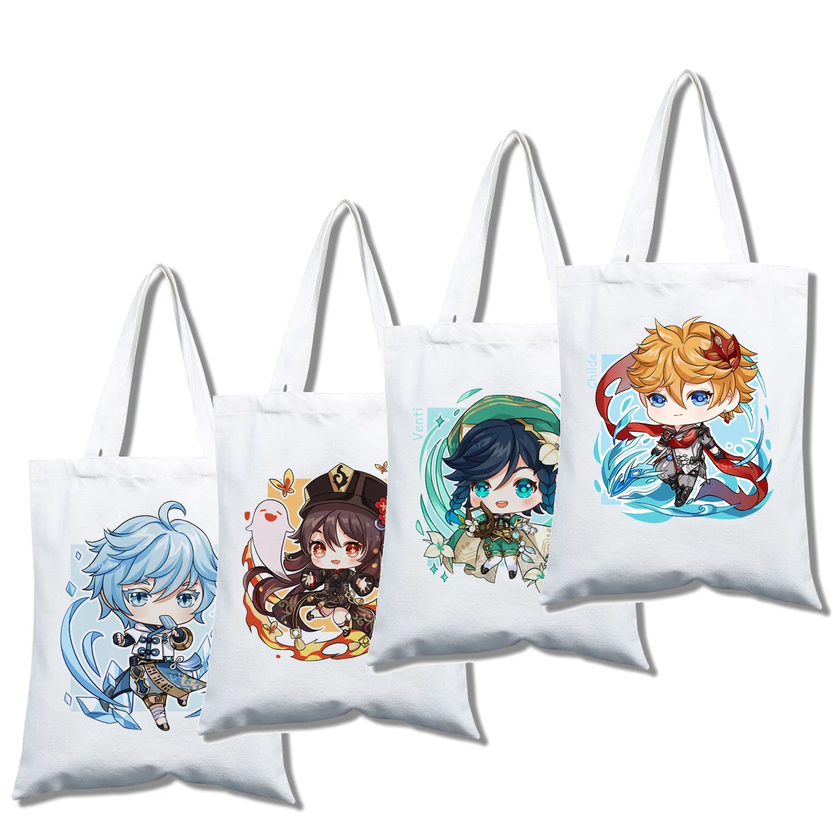 Genshin Impact Женская холщовая 2021 Студенческая вместительная сумка-тоут Venti Xiao Keqing Kawaii Повседневная сумка для покупок на одно плечо