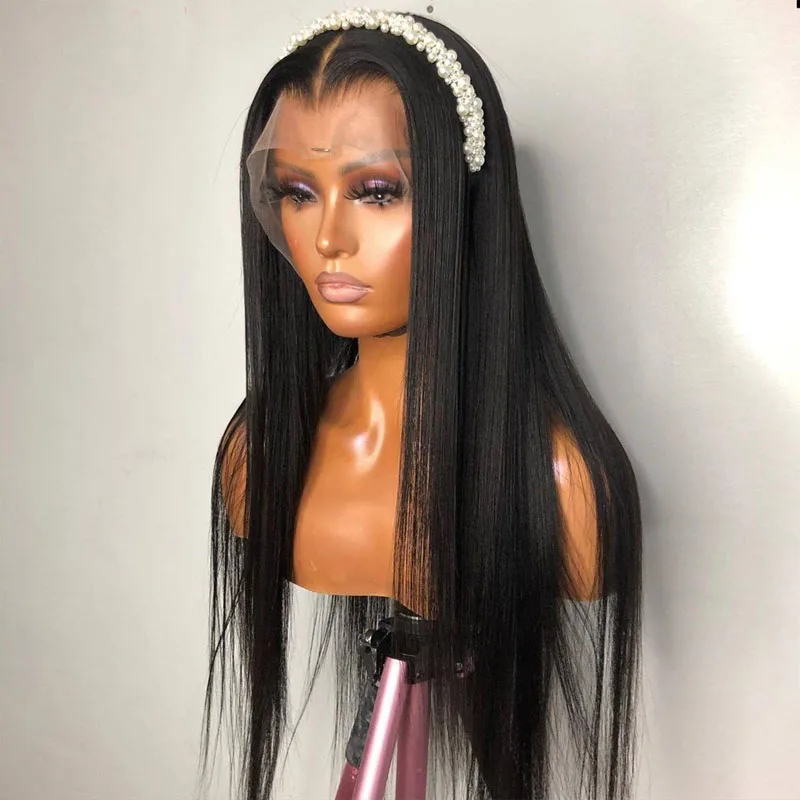Черный цвет, мягкий, прямой, длинный, бесклеевой, кружевной передний парик, высокая температура для черных женщин с детскими волосами, плотность 180%, 26 дюймов