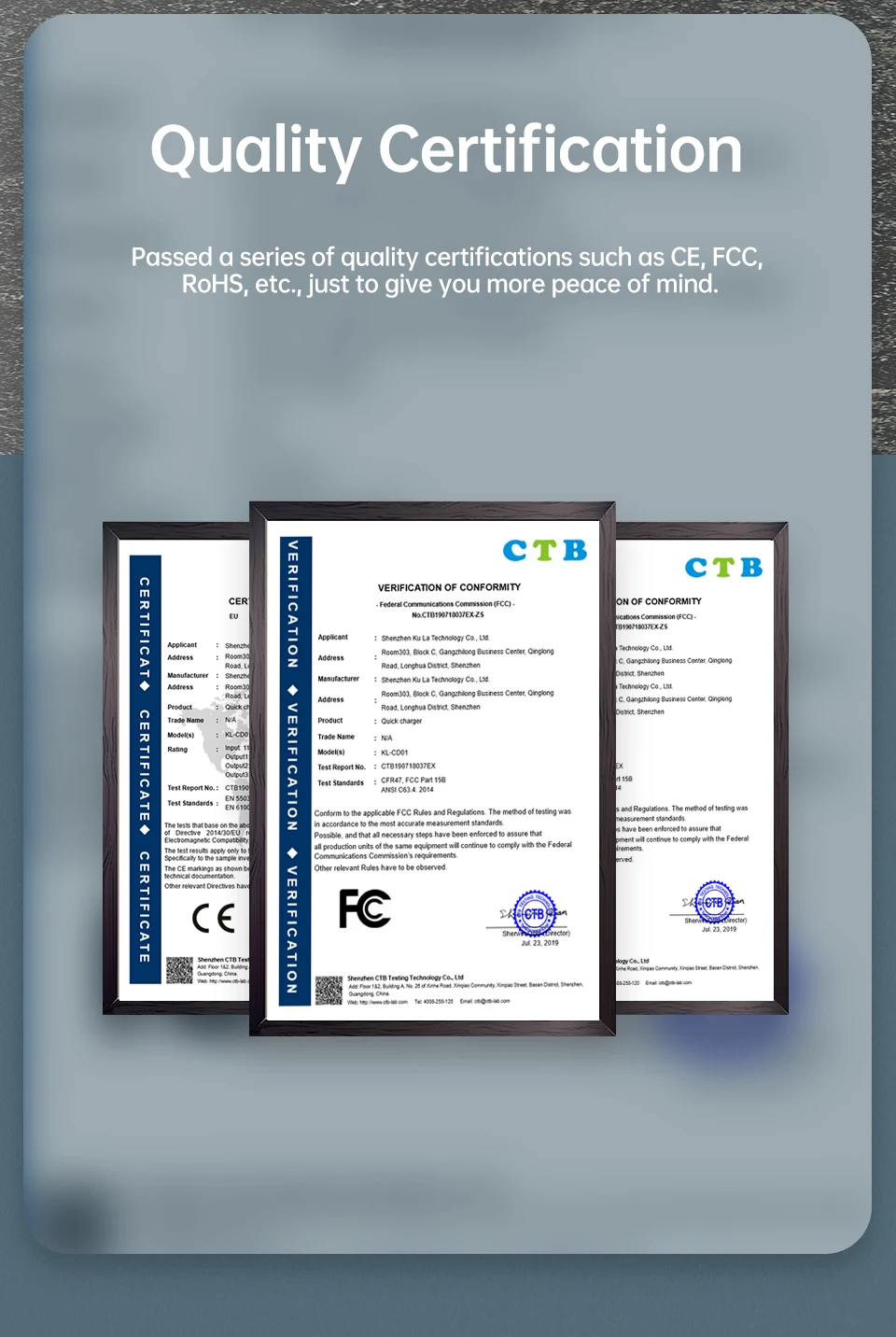 Прошел серию сертификатов качества, таких как CE, FCC, RoHS и т. д., чтобы дать вам больше спокойствия.