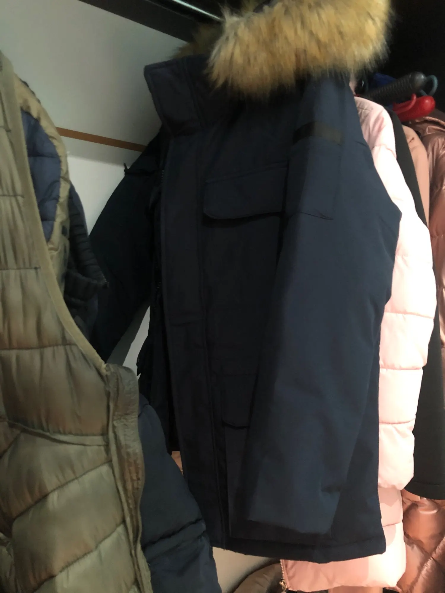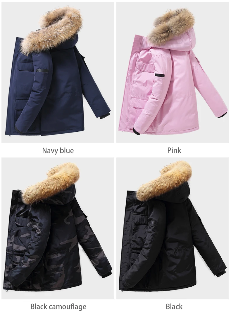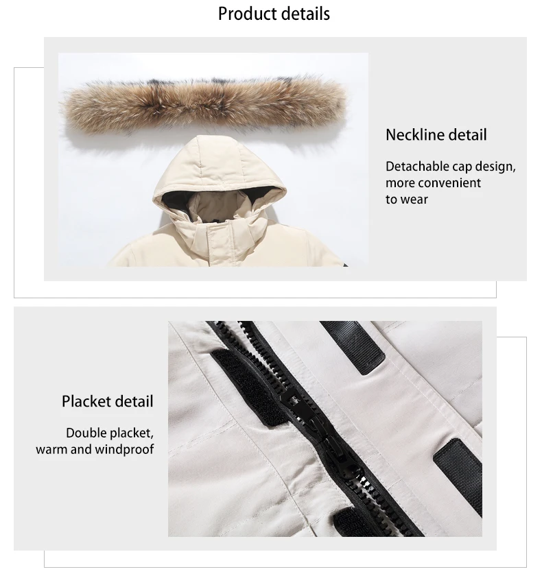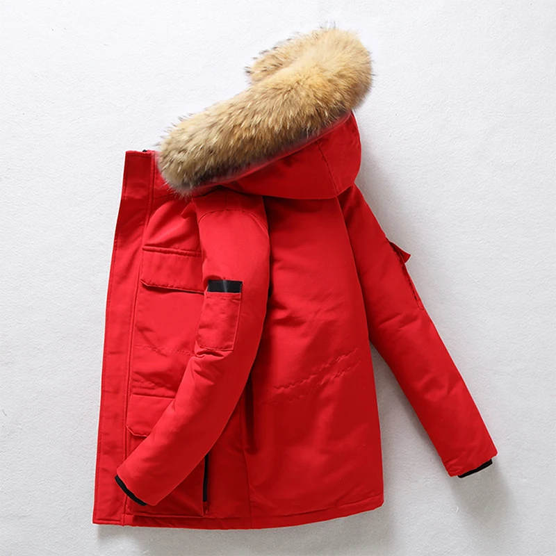 Мужская зимняя куртка на белом утином пуху с капюшоном и меховым воротником