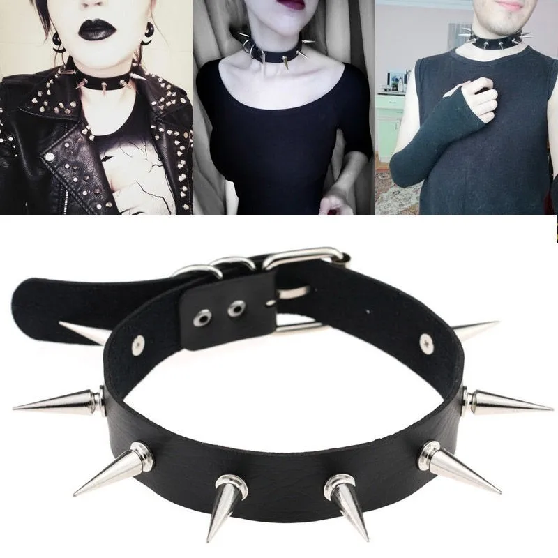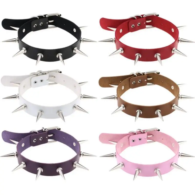 Чокер из искусственной кожи с длинными шипами для мужчин и женщин, крутой чокер с большими заклепками в готическом стиле, аксессуар для ожерелья