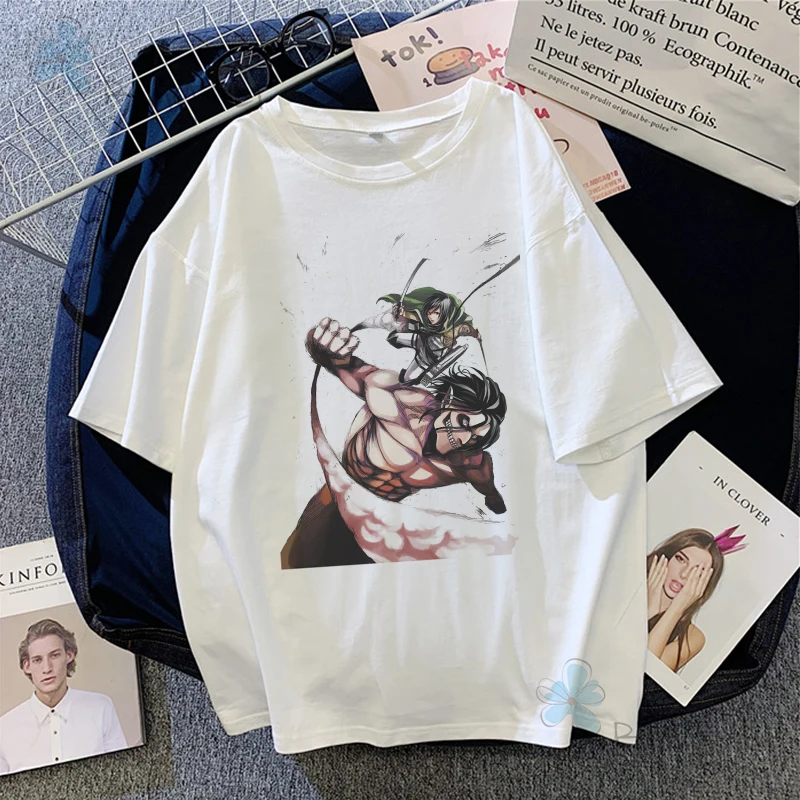 Летняя новая футболка с японским аниме атака на Титанов, свободная ...