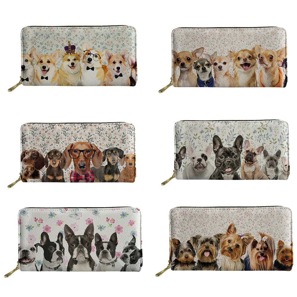 Женский кошелек FORUDESIGNS с принтом йоркширского терьераЧихуахуакорги, Женский Повседневный Кожаный Кошелек с принтом собаки, длинные клатчи, сумки