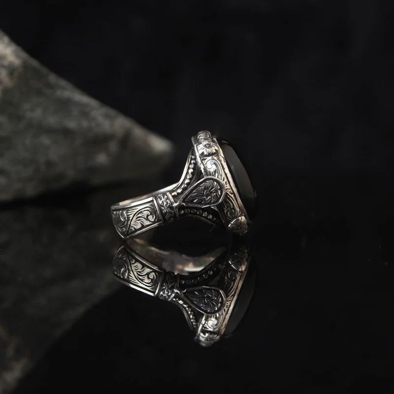 Мужское Винтажное кольцо ручной работы с гравировкой, серебряного цвета, инкрустированное черным цирконием, кольцо в готическом стиле и стиле панк, 2021