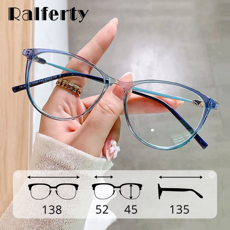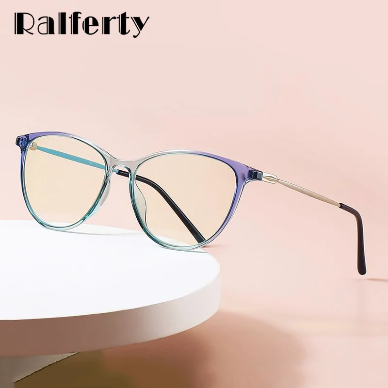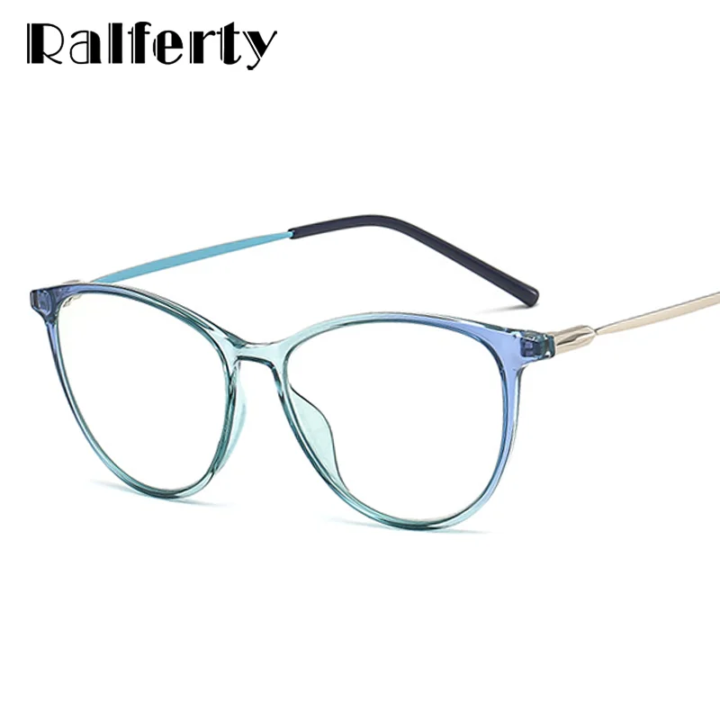 Ralferty декоративные прозрачные очки для женщин оправа для очков женский 2021 кошачий глаз синий светильник компьютерные очки 0 диоптрий очки