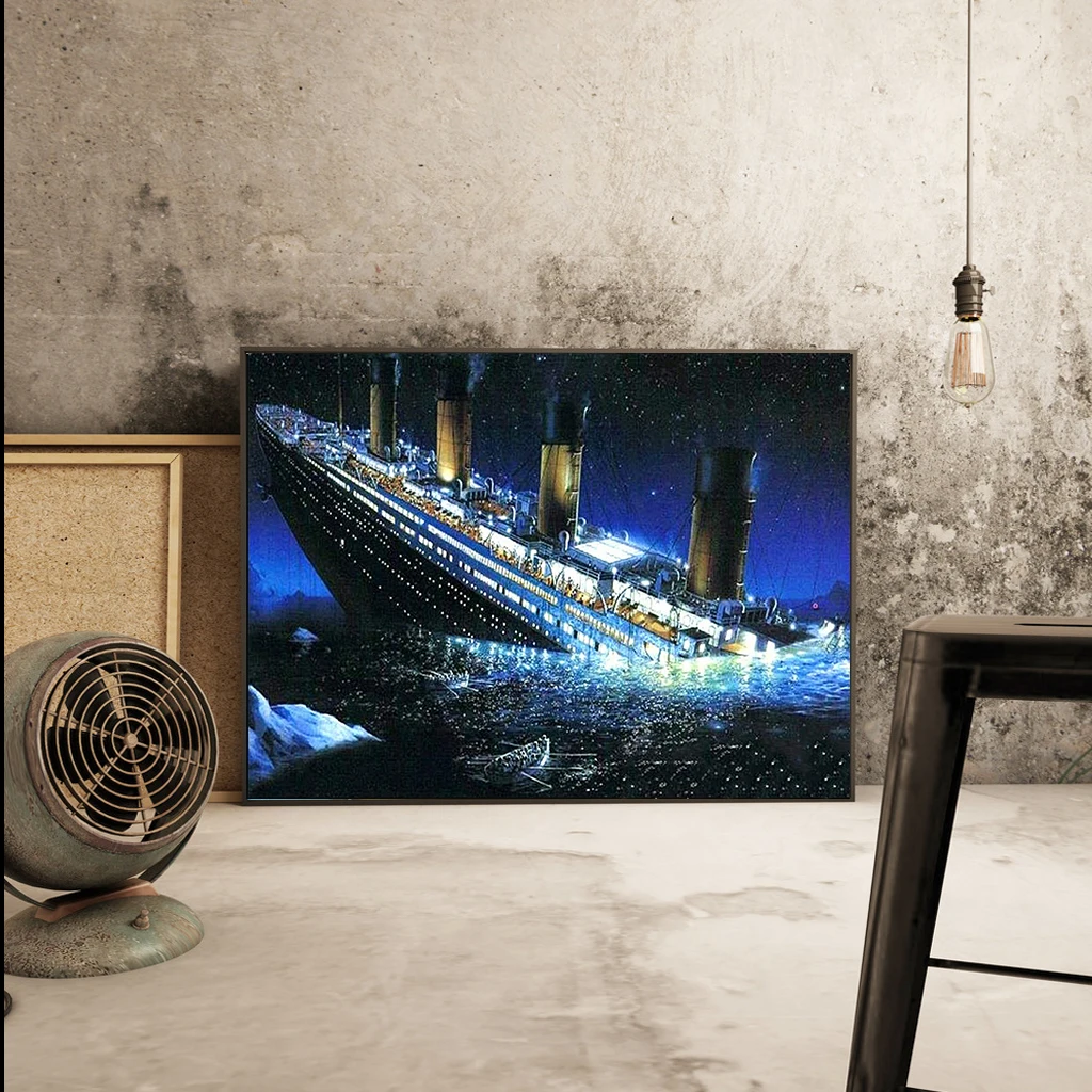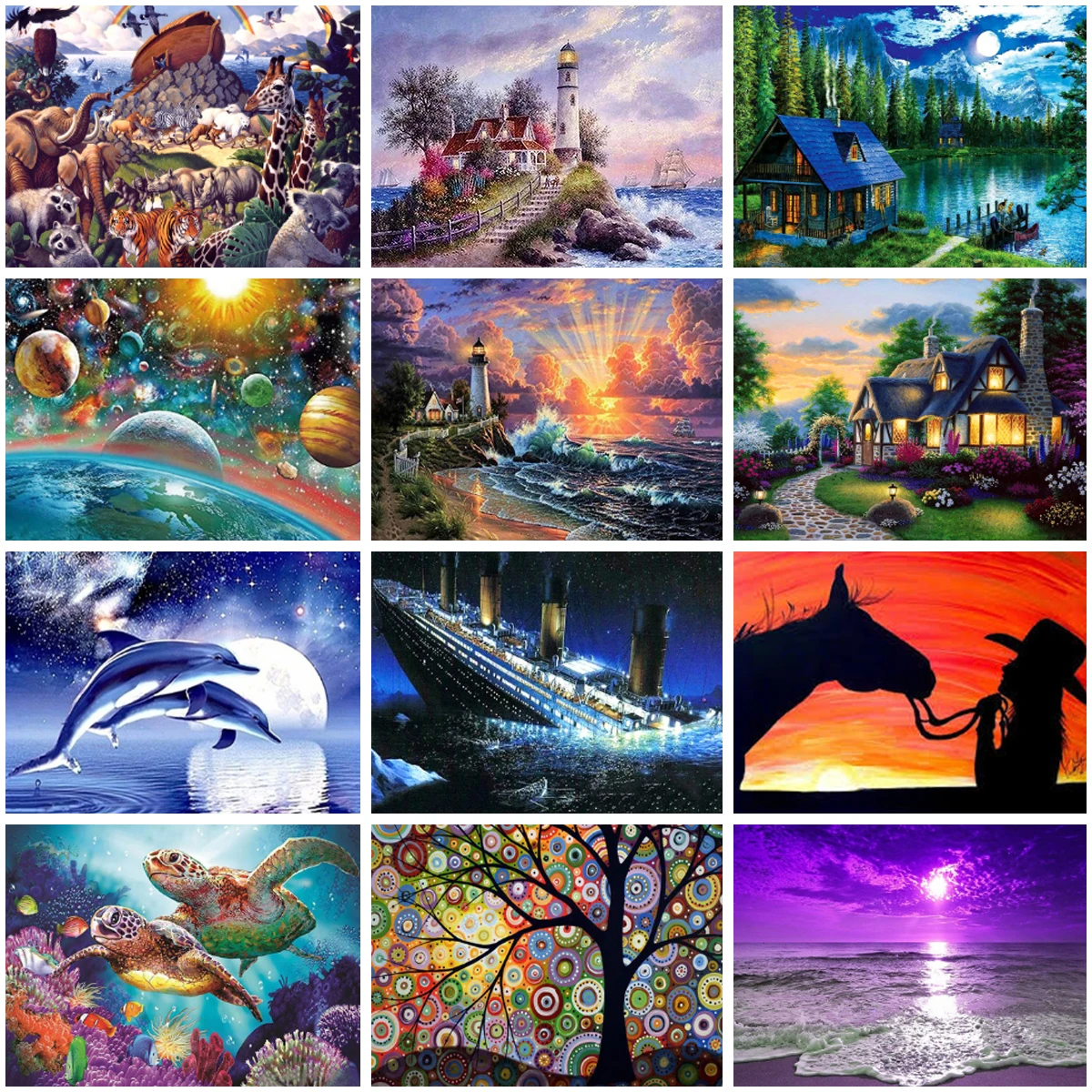 Pintura de diamante 5D, joyier de botaje, barco de paisaje, bordado...