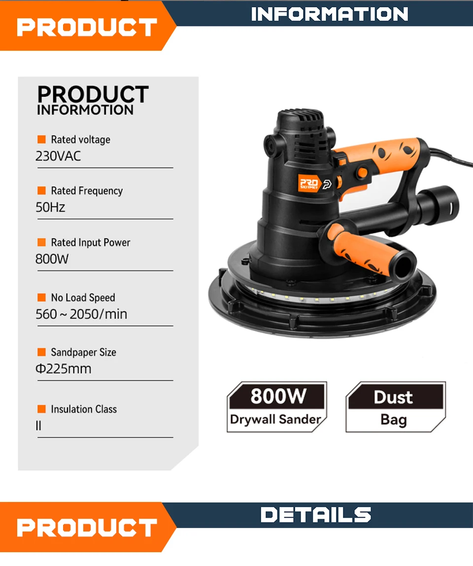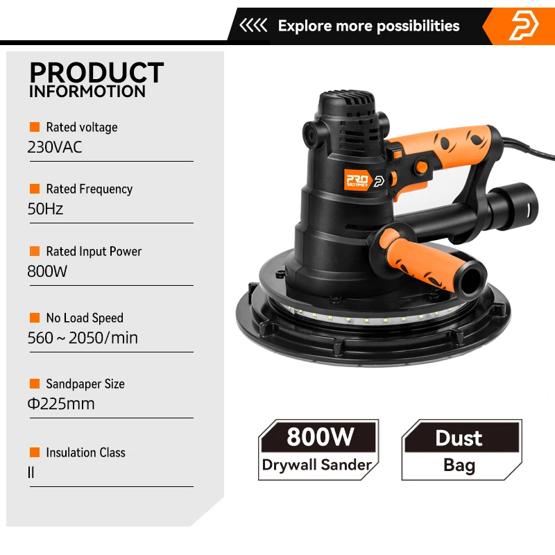 Перезаряжаемая настенная шлифовальная машина PROSTORMER, 800 Вт, 23...
