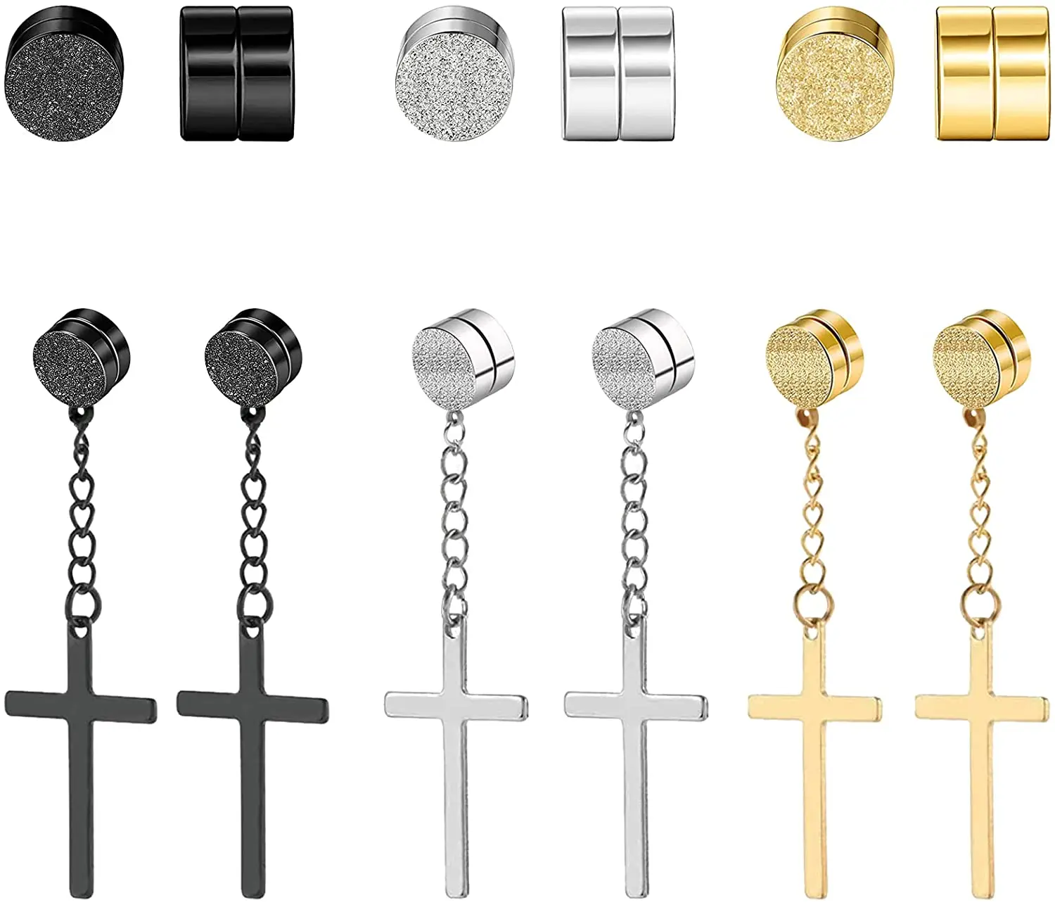 Серьги мужские в стиле панк, сильный магнит, крест, не пирсинг, Наб...