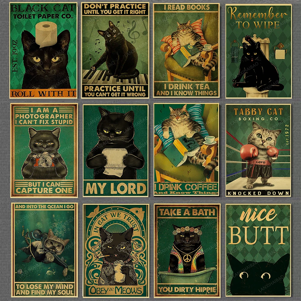 Милый Винтажный постер с черной кошкой, салфетки с вашими ягодицами...