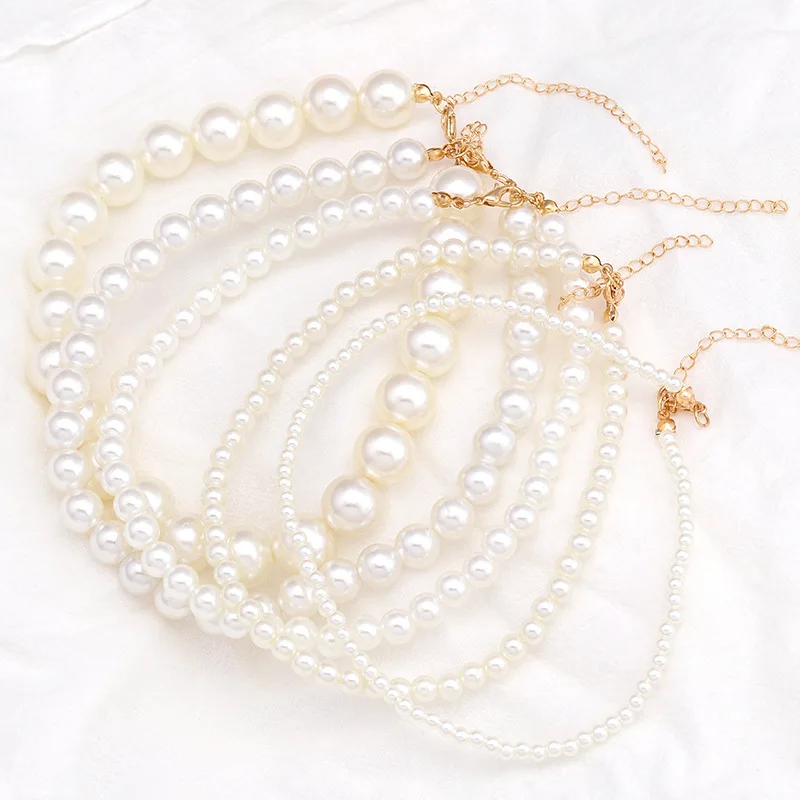 Женское колье с искусственным жемчугом, белое ожерелье-чокер с боль...