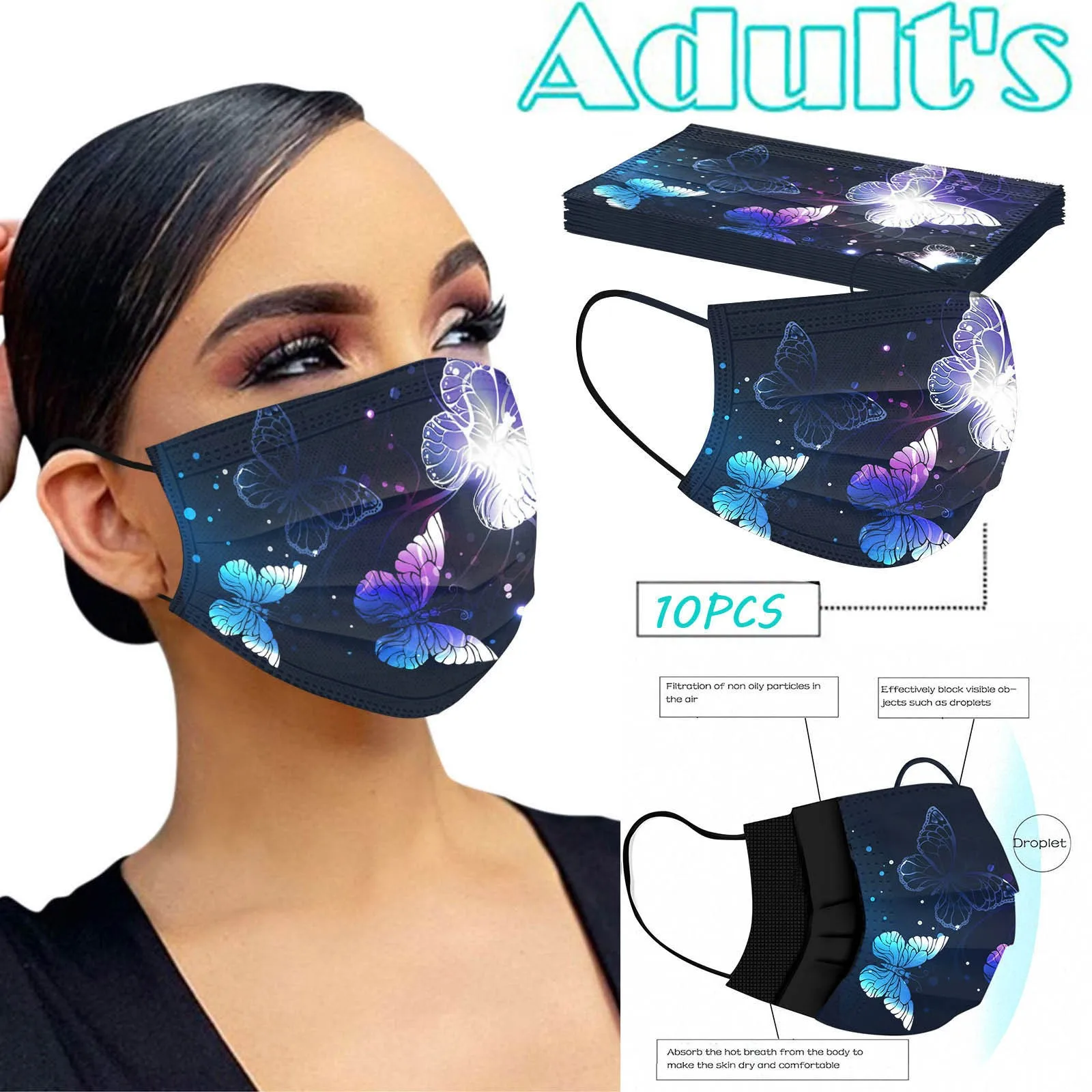 10 шт., одноразовые маски для взрослых, с принтом бабочек