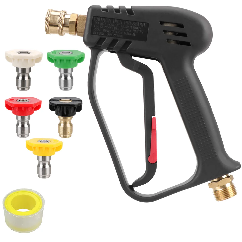 Поставляется с 5 различными сменными насадками, 0 °, 15 °, 25 °, 40 ° и 60 ° градусовЛатунный быстроразъемный соединитель для быстроразъемного соплаПистолет Номинальный до 280 бар-4000 PSI, максимальный поток 25 л/м, максимальная температура 150 градусовЗамок триггераM22 Штекерный соединитель, поставляемый по стандарту-подходит прямо к вашему шлангу мойки давления M224000psi пусковое устройствоБыстрый адаптер для шланга Karcher или NilfiskМатериал: латунь + пластикЦвет: черныйСоветы: