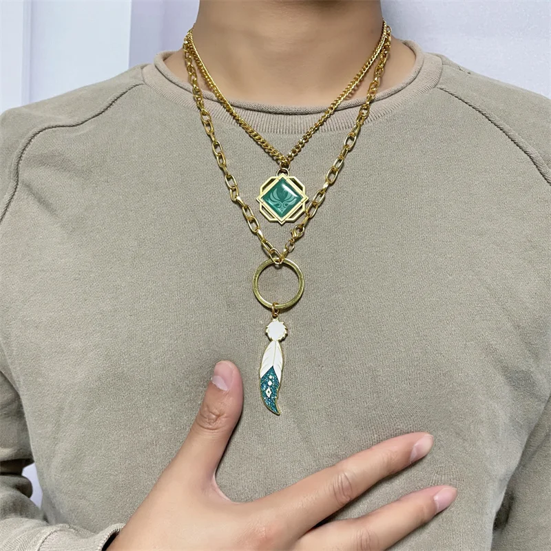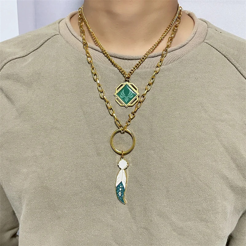 Game Genshin Impact Barbatos Venti Eye Of God Wind Element Feather, Двухслойное искусственное ювелирное изделие, подарок на Рождество