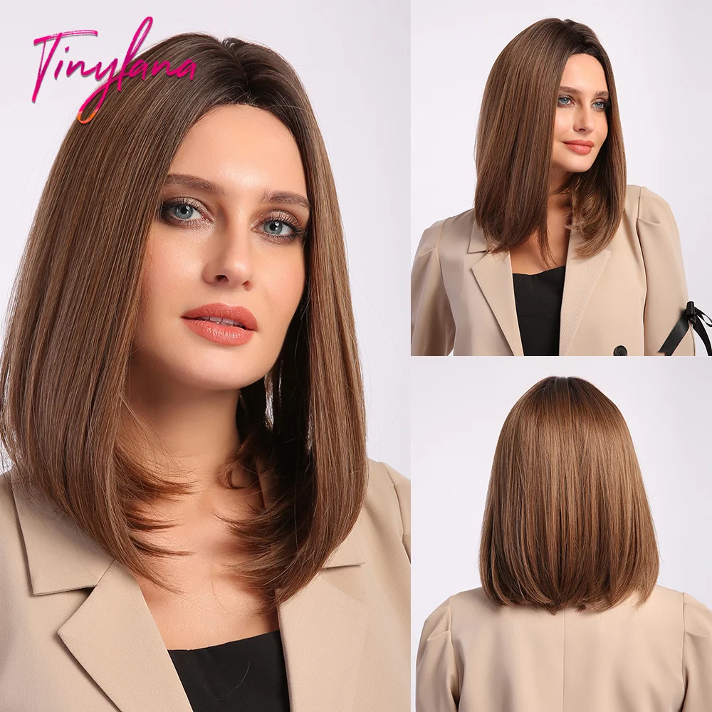 Средние прямые синтетические волосы, парик Боб, темно-черные коричневые короткие парики с челкой для женщин, косплей, ежедневный, Стандартный, термостойкий