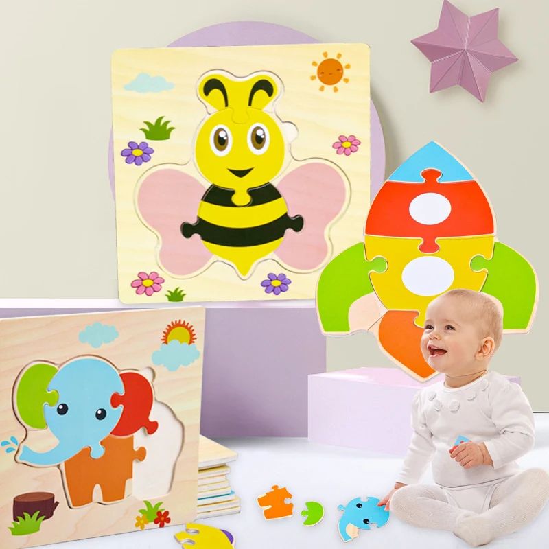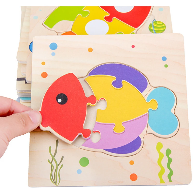 Детские игрушки, Деревянный 3d пазл, Обучающие Мультяшные животные,...