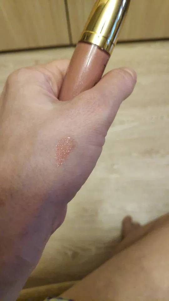 В целом блеск хороший, вполне комфортный, не липкий, но блестит меньше, чем на фото. Блестки не однородные с общим составом, просто добавлены в блеск, поэтому немного покалывают на губах.