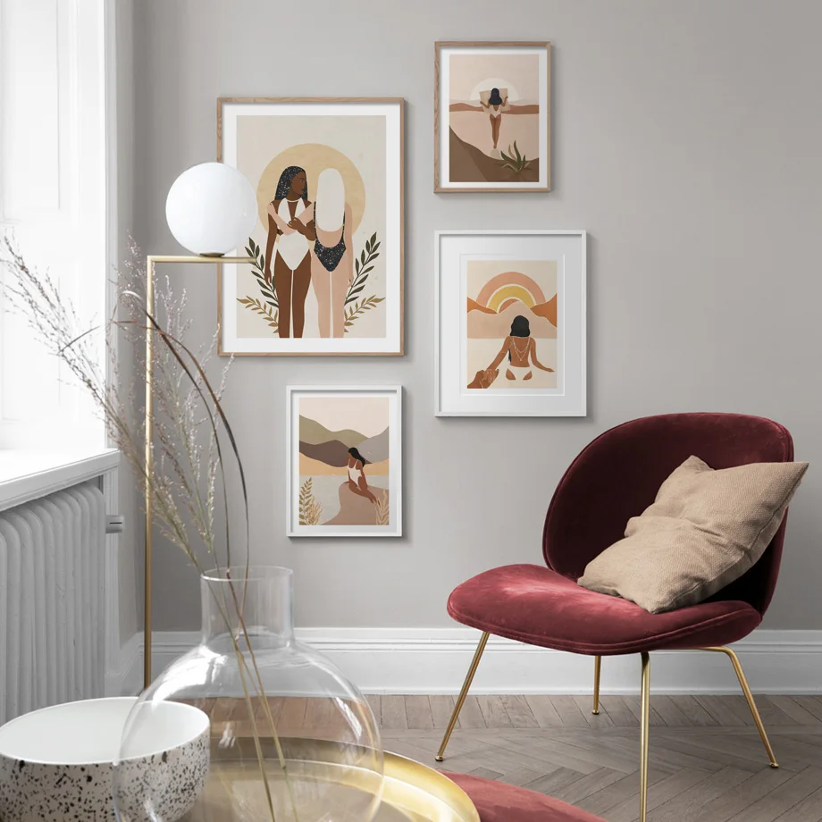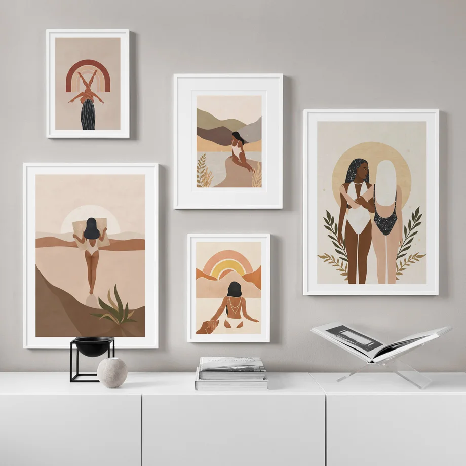 Абстрактный постер в богемном стиле для пляжа, плавающей девушки, скандинавский плакат, современная настенная Картина на холсте, декоративные картины для гостиной